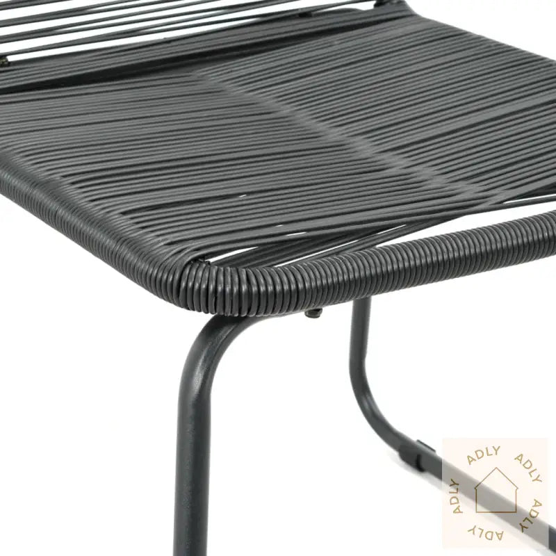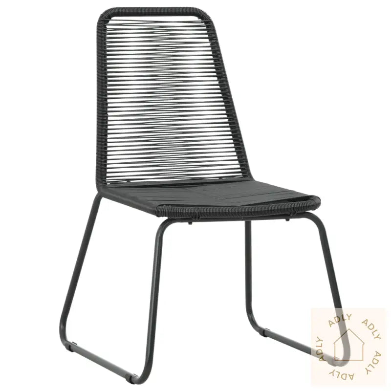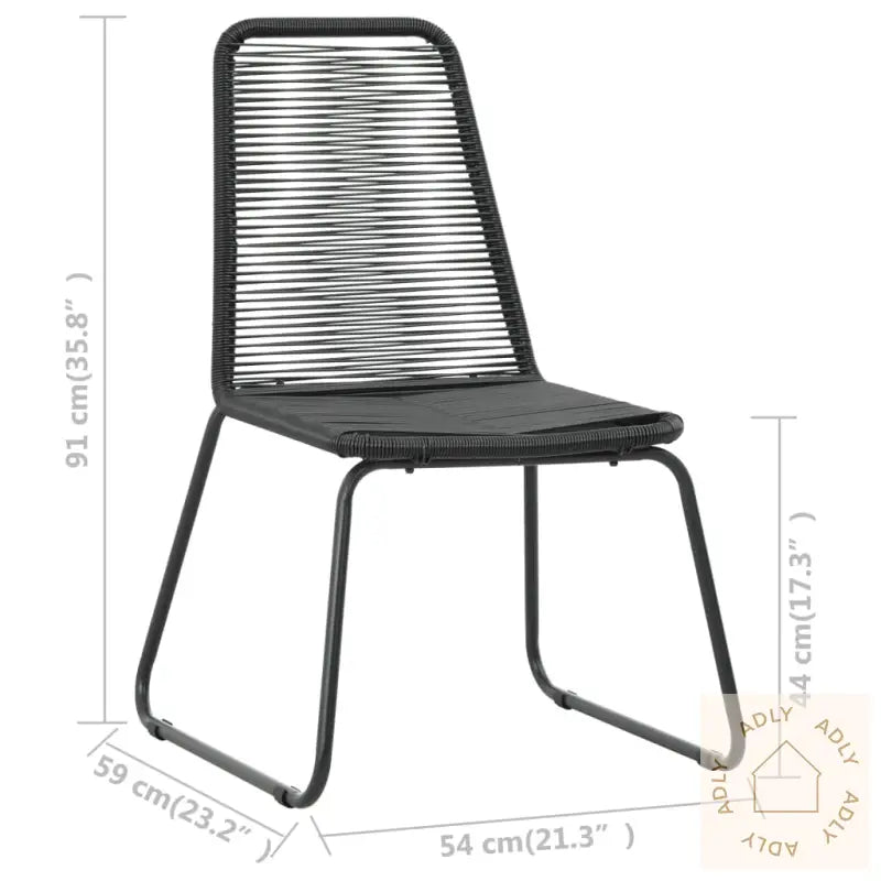 Farge: svartMaterialer: PE (polyetylen) rotting + pulverlakkert stålrammeMål stol: 54 x 59 x 91 cm (B x D x H)Bredde sete: 45 cmDybde sete: 40 cmHøyde sete fra bakken: 44 cmLeveransen inkluderer 2 stolerMontering kreves: ja