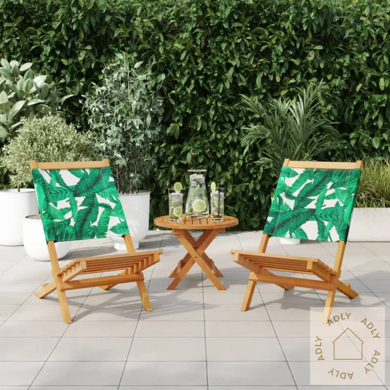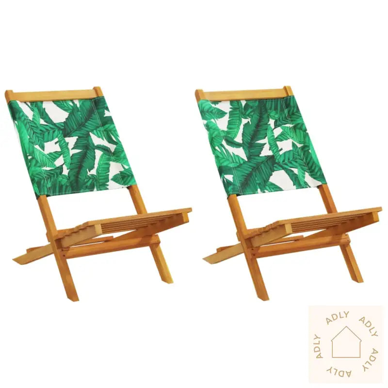 Farge: grønne bladerMaterialer: heltre akasie med oljefinish, stoff (100% polyester)Mål: 41 x 72 x 68 cm (B x D x H)Mål sete: 41 x 28 cm (B x D)Setehøyde fra bakken: 29 cmMaksimal lastekapasitet (per sete): 110 kgLeveransen inneholder:2 x hagestoler