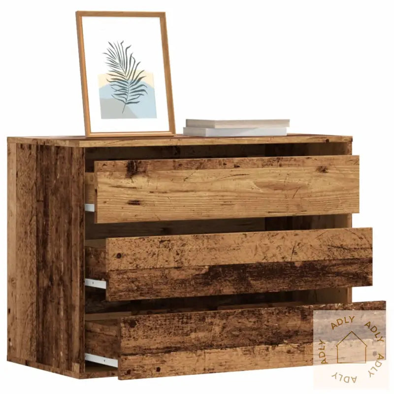 For økt sikkerhet må produktet brukes sammen med den medfølgende festeanordningen for å unngå at kommoden velter.Farge: gammelt treMateriale: konstruert treMål: 80 x 41 x 58 cm (B x D x H)Montering kreves: jaLegal Documents: