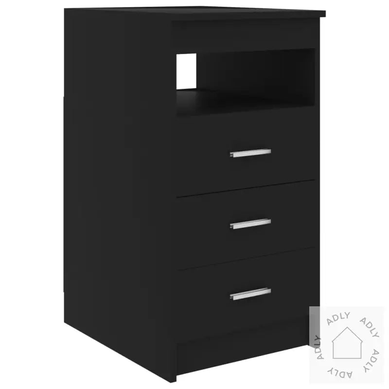 Farge: svartMateriale: konstruert treSamlet mål: 40 x 50 x 76 cm (L x B x H)Med 3 skuffer og 1 øvre oppbevaringshylleEnkel å vedlikeholde og rengjøreMontering kreves: jaADVARSEL: For å forhindre at skapet velter, må det festes til veggen med den medfølgende veggfesteenheten