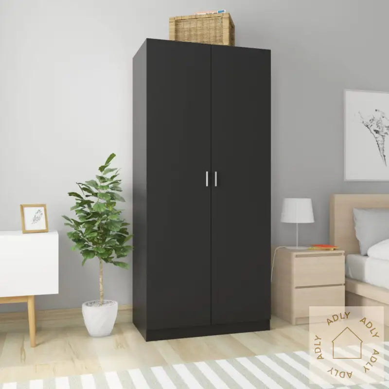 Farge: svartMateriale: konstruert treMål: 90 x 52 x 200 cm (B x D x H)Med 2 dørerMed et høyt rom og en hengestang på innsiden