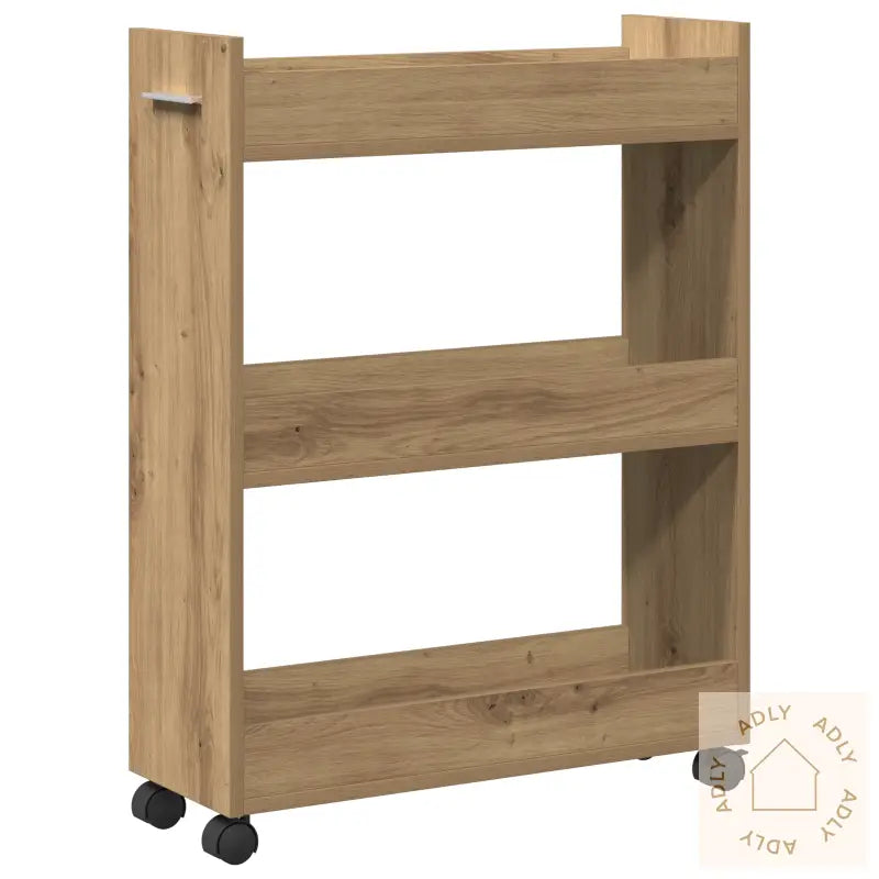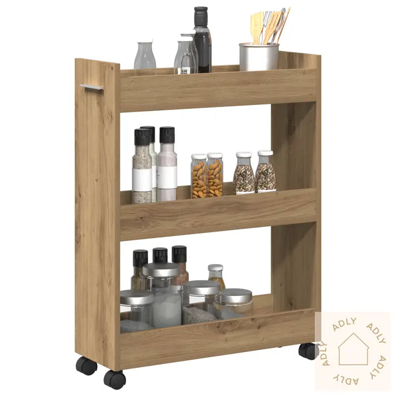 Dette kompakte lagringsskapet i kunstnerisk eik gir en moderne og stilig løsning for organisering av tingene dine hjemme. Det passer perfekt til kjøkkenet, spiskammeret eller utstyrsrommet, spesielt når du ønsker å holde området ryddig uten at det går på bekostning av design. Skapet har flere rom og en vakker brun finish som ikke bare gjør det funksjonelt, men tilfører også et sofistikert preg til interiøret. Enten du samler på møbler til hjemmet, ser etter bokhyller og stående hyller, eller bare vil forbedre lagringsmulighetene dine, er dette skapet et solid valg.