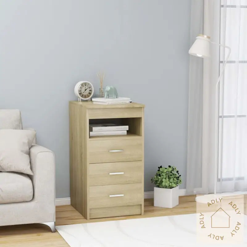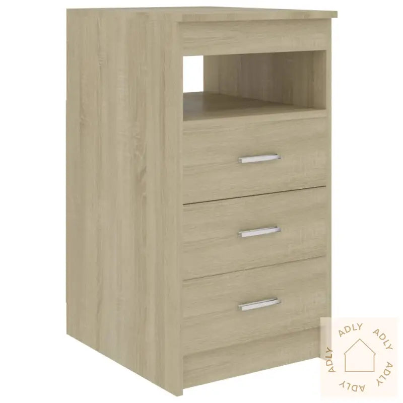 Farge: sonoma eikMateriale: konstruert tre – slitesterkt og enkelt å vedlikeholdeSamlet mål: 40 x 50 x 76 cm (L x B x H)Tre romslige skuffer og én åpen hylle øverst sørger for variert oppbevaringEnkel å rengjøre og vedlikeholde, ideelt for travle hjemMontering kreves: ja