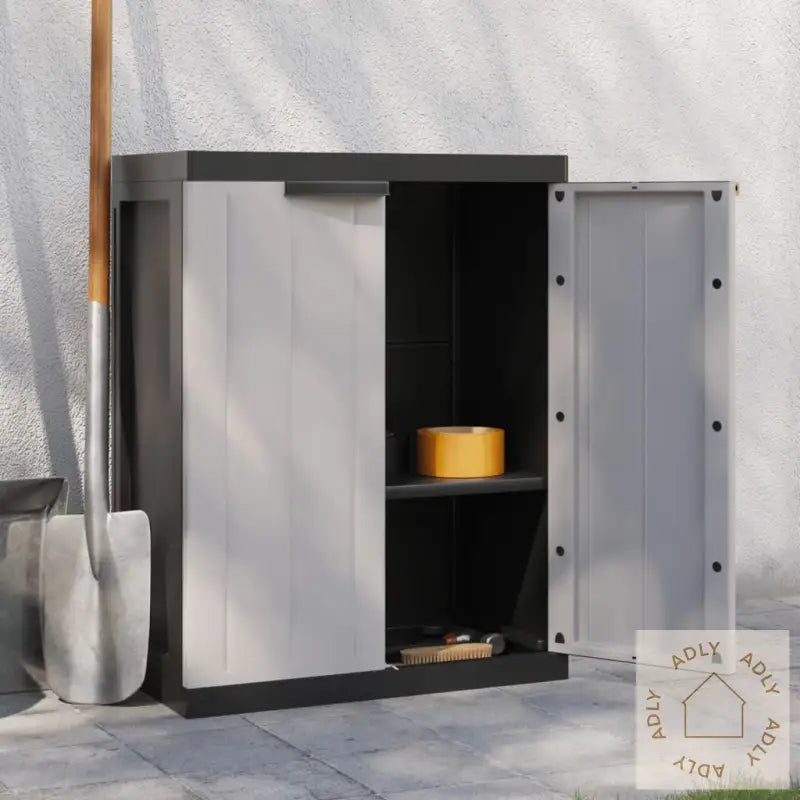 Dette utendørs oppbevaringsskapet passer perfekt for deg som ønsker å holde orden på husholdningsartikler, verktøy eller andre ting du bruker i hverdagen. Det gir en smart og praktisk løsning for organisering ute, enten det plasseres i hagen, på terrassen eller på balkongen.