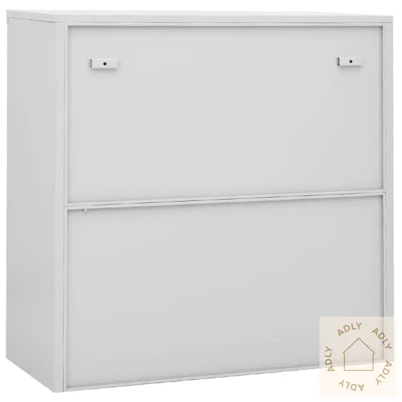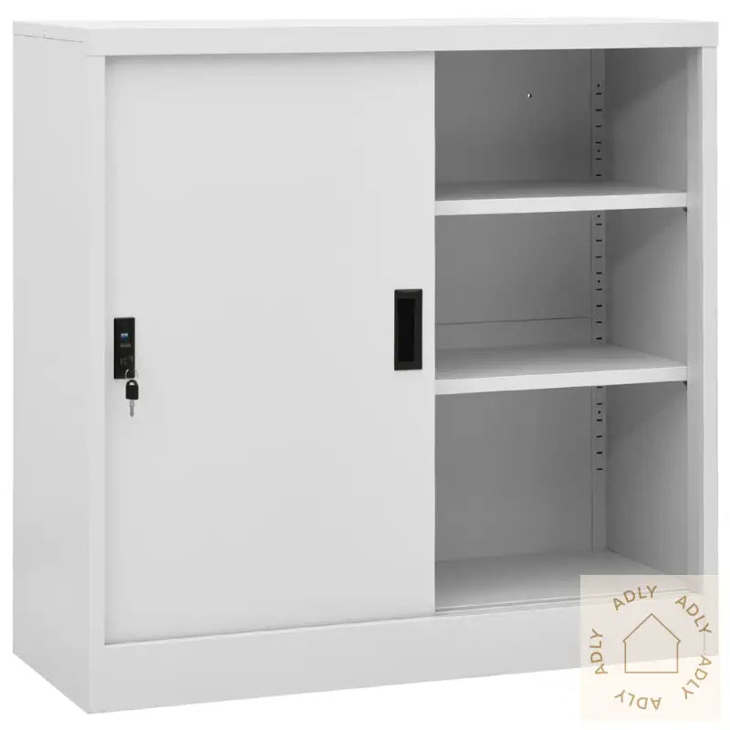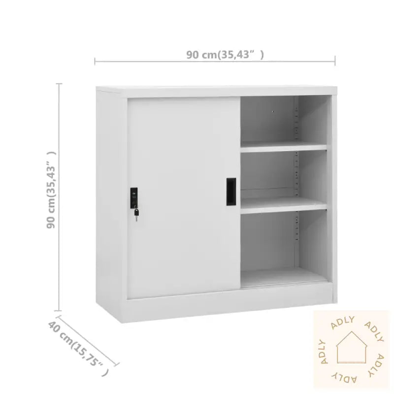 Farge: lysegråMateriale: stålMål: 90 x 40 x 90 cm (L x B x H)Med skyvedørAntall hyller: 2Lastekapasitet per hylle: 30 kgTotal lastekapasitet: 60 kgInkluderer lås for ekstra sikkerhetMontering kreves: jaADVARSEL: For å forhindre at produktet velter, må medfølgende festemidler for vegg brukes.
