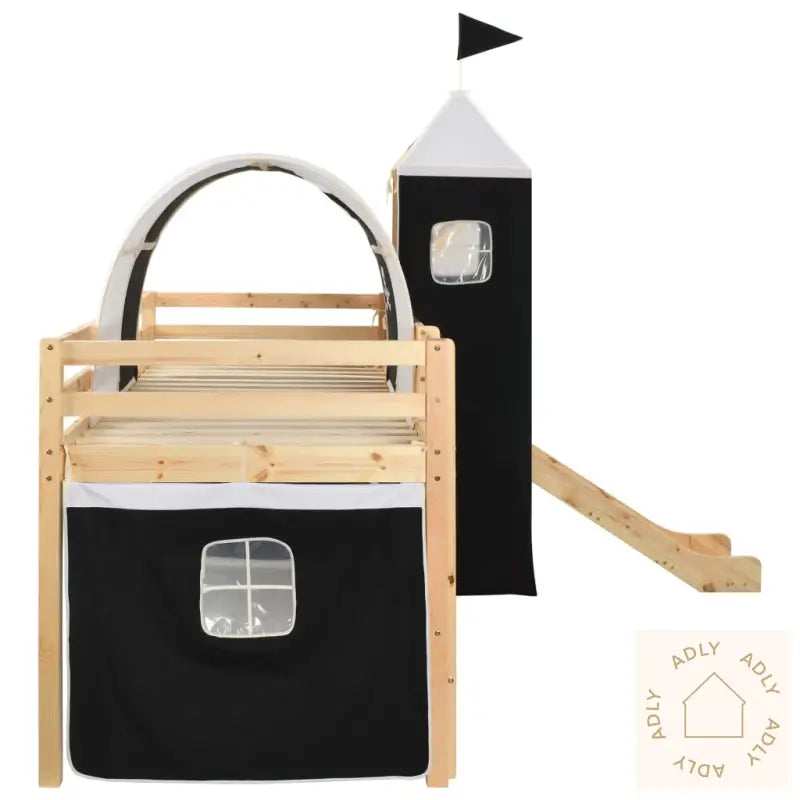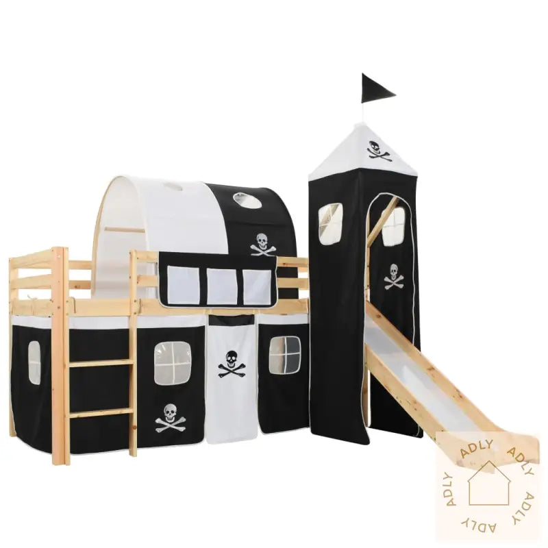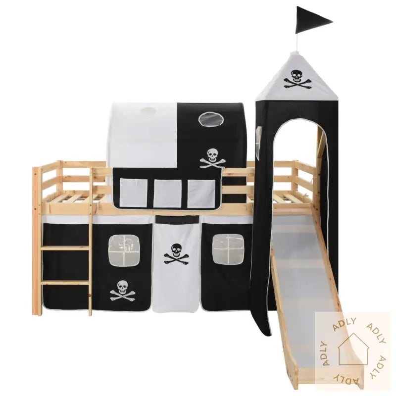 Farger: svart og hvitFarge: naturellMateriale ramme: heltre furuMål med telt og morsom sklie: 208 x 147,5 x 185 cm (L x B x H)Mål uten telt, sklie eller tårn: 208 x 97 x 110 mm (L x B x H)Egnet madrass: 90 x 200 cm (B x L) (madrass ikke inkludert)Sklie: 150 x 36,5 cm (L x B)Stige: 83 x 35 cm (L x B)Morsom sklie og stige kan monteres enten til venstre eller høyreSolide rekkverk og forsterket rammeInkluderer praktiske sengelisterAvtakbart telt med pirat-tema, komplett med tårn og sideveggerBeregnet kun for innendørs brukPasser barn fra 6 til 16 årMaks brukervekt: 80 kgADVARSEL: Kun til husholdningsbruk.