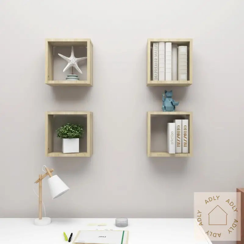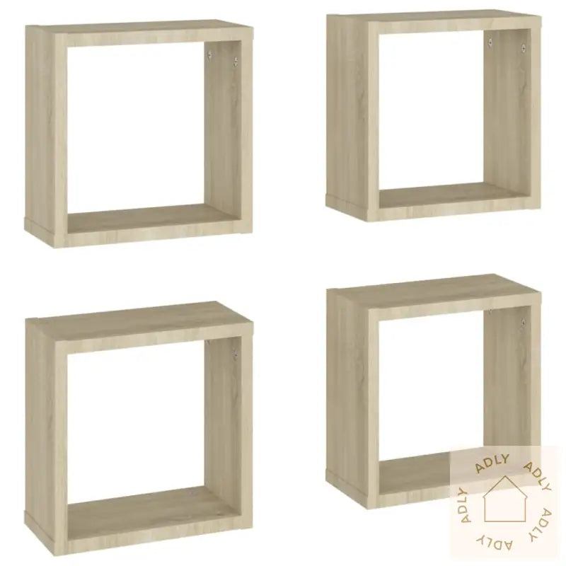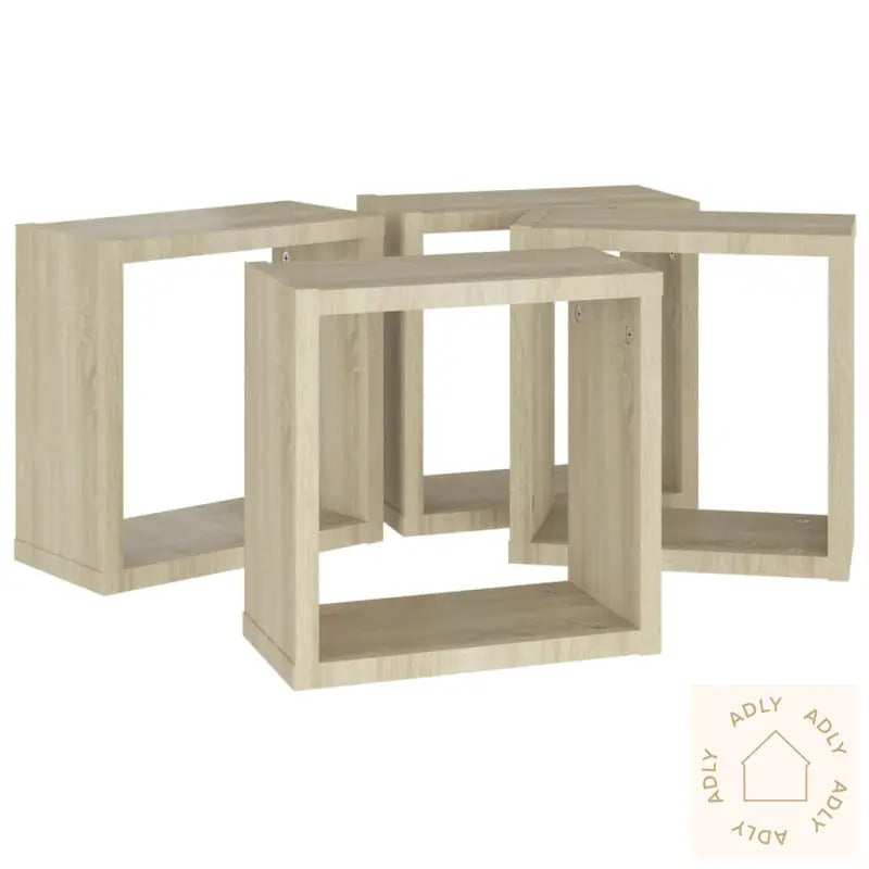Dette settet med kubeformede vegghyller kommer i en lekker sonoma eik-finish og er designet for å gi rommet ditt et moderne og stilfullt preg. De solide hyllene er laget av konstruert tre, noe som gir både robusthet og lang levetid – perfekt for deg som ønsker praktiske og slitesterke møbler til hjemmet.
