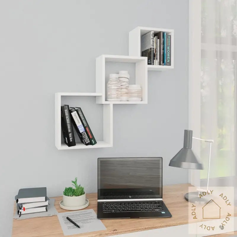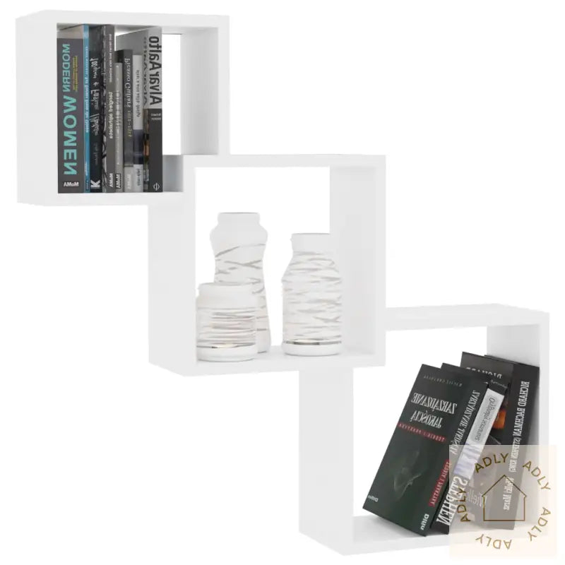 De tre kvadratiske kubene har et kreativt sammenlåst design og gir plass til alt fra bøker og priser til samleobjekter og små pyntegjenstander. Kubene er laget av solid sponplate, noe som sikrer at hyllene er slitesterke og stabile år etter år. Materialet er enkelt å holde rent, og den hvite finishen passer godt sammen med mange ulike interiørstiler. Vegghyllene gir deg et spennende alternativ til tradisjonelle bokhyller og stående hyller, og tar dessuten minimalt med gulvplass. Settet leveres komplett med monteringsmaterialer som gjør installasjonen rask og enkel.
