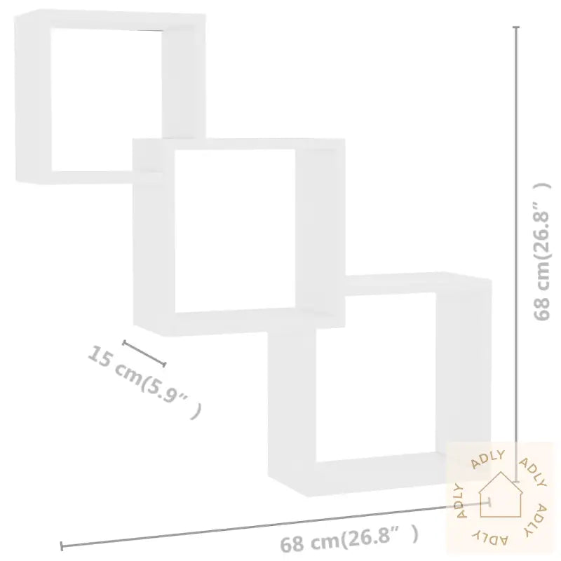 Farge: hvitMateriale: konstruert treSamlet mål: 68 x 15 x 68 cm (B x D x H)Mål den øvre kuben: 23 x 15 x 23 cm (B x D x H)Mål den midterste kuben: 27 x 15 x 27 cm (B x D x H)Mål den nedre kuben: 30 x 15 x 30 cm (B x D x H)Maksimal lastekapasitet (totalt): 40 kgVennligst merk: Skrue(r) og plugg(er) for innsiden av veggen er ikke inkludert. Finn og bruk skru(er) og plugg(er) som passer for veggene dine. Hvis du er usikker, søk profesjonelle råd. Les og følg hvert trinn i instruksjonen nøye.