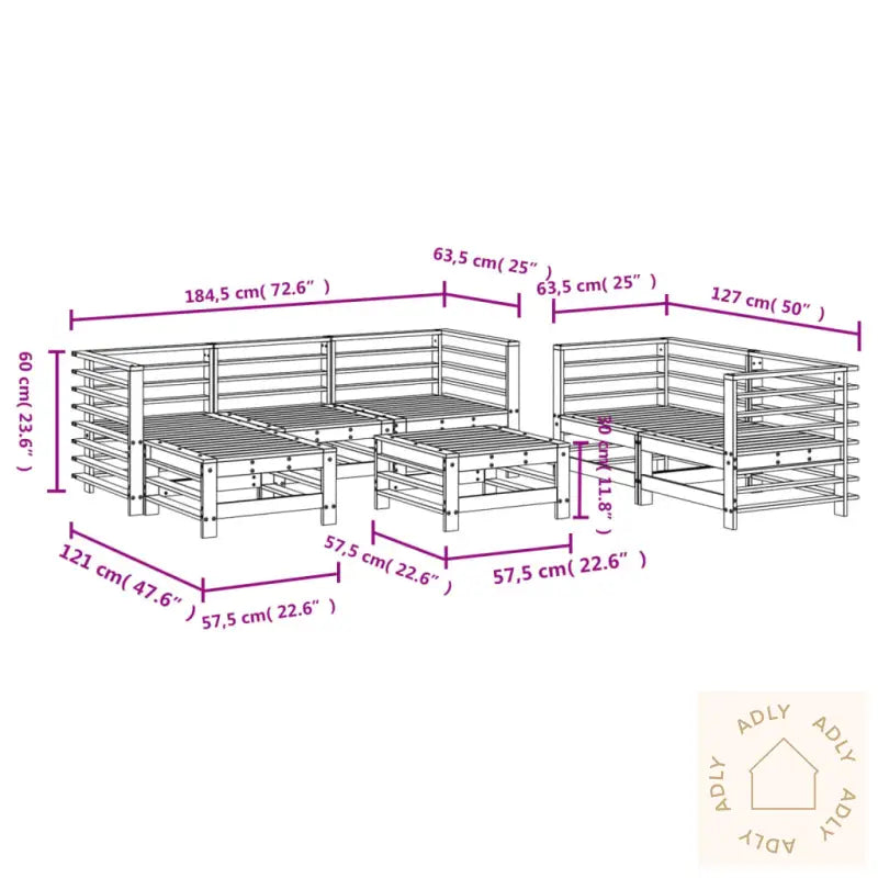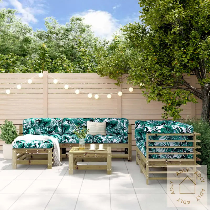For å ta vare på hagemøblene dine anbefaler vi å bruke et vanntett trekk, spesielt gjennom regnfulle perioder.Vær oppmerksom på at puter må kjøpes separat, slik at du kan velge farger og komfort etter din smak.Materiale: Trykkimpregnert furu som gir god holdbarhetLameller i slitesterk kryssfinerMål hjørnesofa: 63,5 x 63,5 x 60 cm (B x D x H)Mål midtsofa: 57,5 x 63,5 x 60 cm (B x D x H)Mål fotskammel/salongbord: 57,5 x 57,5 x 30 cm (B x D x H)Maks belastning per sete: 110 kg – solid for daglig brukLett montering følger med instruksjonenePakken inneholder:4 x hjørnesofaer1 x midtsofa2 x fotskamler/salongbord