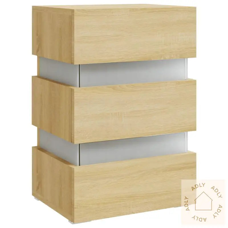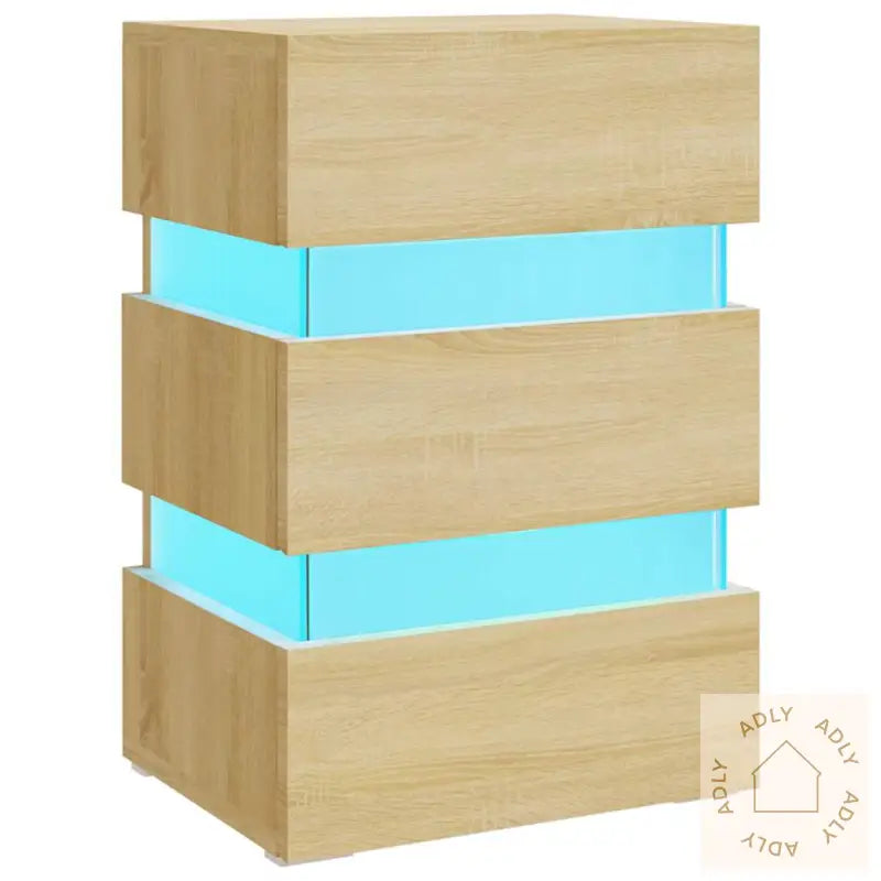 Lei av å famle etter lysbryteren i mørket om natten? Med dette stilige LED-nattbordet i sonoma eik slipper du det! Den innebygde LED-belysningen gir akkurat nok lys til at du finner frem, og tilfører samtidig rommet en moderne touch. Skapet er laget av konstruert tre for ekstra stabilitet, og har en slitesterk overflate som enkelt tørkes ren med en fuktig klut. Dette gjør det superpraktisk både i bruk og vedlikehold.