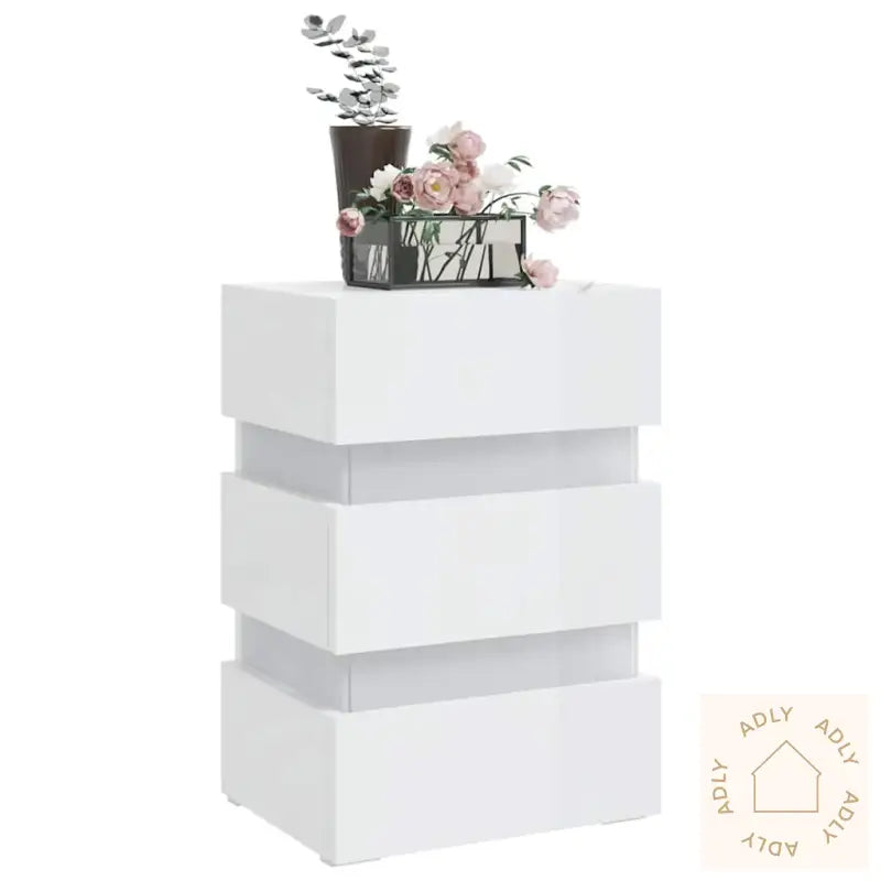 Det innebygde LED-lyset gir ikke bare praktisk belysning, men løfter også inntrykket av soverommet ved å gi en moderne følelse. Dette nattbordet kombinerer elegant høyglans hvit finish med smart teknologi, og USB-tilkoblingen gjør det enkelt å lade mobil eller andre små elektroniske dingser. Merk at produktet leveres med USB-kontakt, men du må koble til din egen 5V USB-strømkilde.