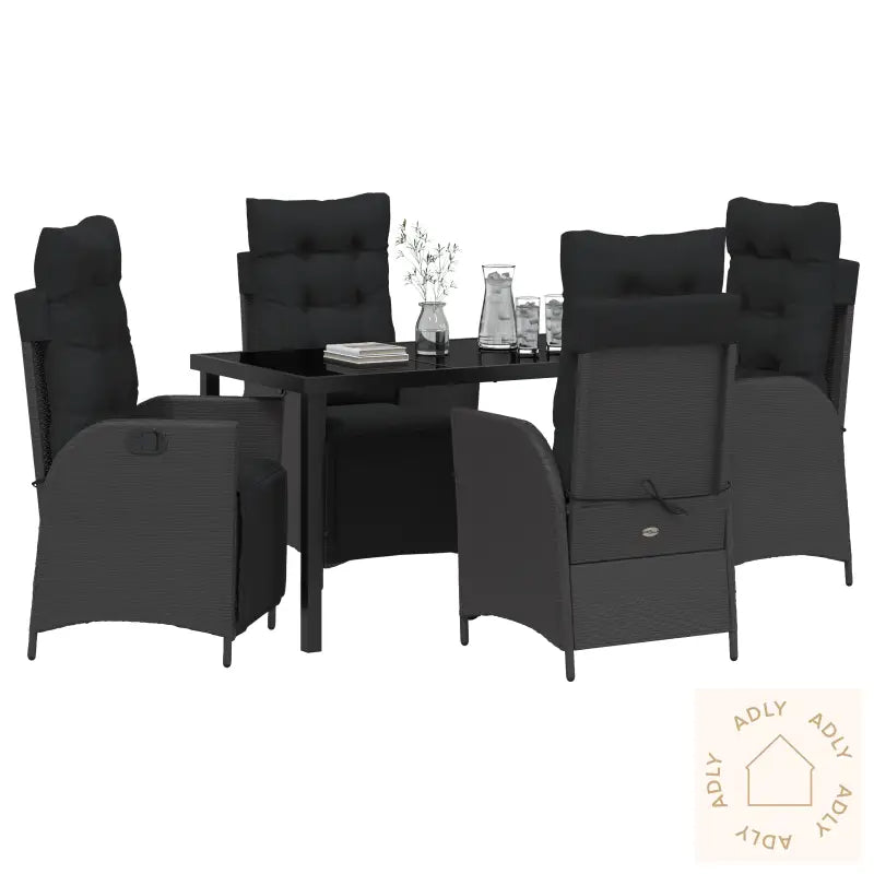 Stilig estetikk: Svart poly rattan kombinert med kremhvite puter gir den perfekte balansen mellom trendy look og innbydende komfort. Disse liggende hagemøblene passer rett inn i et moderne utemiljø.