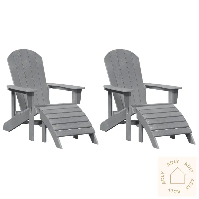 Dette 2-delte hage loungesettet bringer både stil og komfort til uterommet ditt, takket være de klassiske Adirondack-stolene i en moderne lys grå HDPE-finish. Disse robuste og trendy hagemøblene er perfekte for alt fra ettermiddagskaffe til rolige stunder utendørs, og gir uteplassen eller terrassen din et friskt uttrykk. Med de brede, flate armlenene og den komfortable, tilbakelente ryggstøtten blir det lett å koble av – enten du leser en bok, nyter en drink eller slapper av sammen med venner.