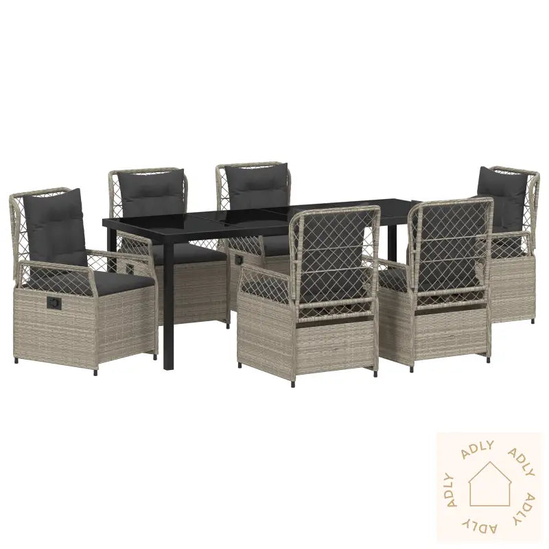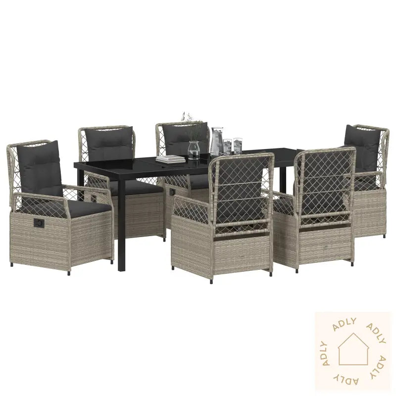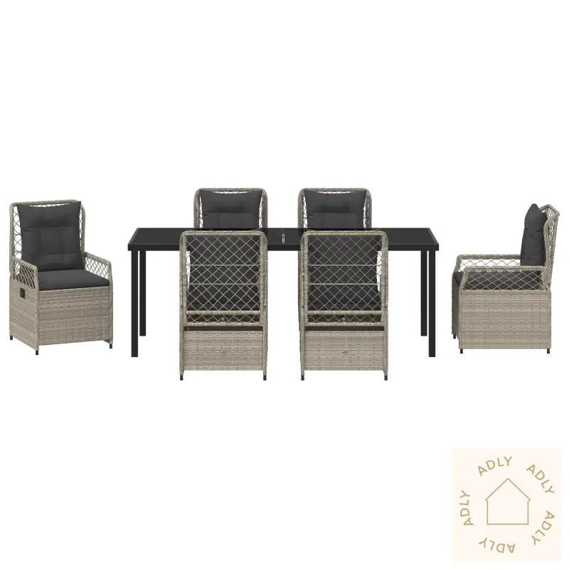 Det lyse grå PE rotbåndet gir både et moderne uttrykk og enkel vedlikehold, samtidig som det hindrer at materialet falmer i sola. Perfekt til både garten und terrasseg.Enkelt å finne den beste sittevinkelen med justerbar ryggstøtte, som justeres smidig med et håndtak—inviter til lange, komfortable stunder utendørs.De myke, tykke putene gir ekstra mye komfort for hyggelige timer alene eller sammen med venner og familie.Praktiske avtakbare trekk gjør rengjøringen problemfri og sikrer at møblene ser nye og friske ut lengre.Svært solid og stabil takket være den pulverlakkerte rammen i stål; designet for daglig bruk og for å vare lenge.Antall elementer: 7 (6 stoler, 1 bord)Farge: Lys grå – passer perfekt til moderne utendørsinteriør og trendy hagemøbler.Form: RektangulærMateriale: Slitesterkt syntetisk poly rotbåndFinish: PulverlakkertBruksområde: Kun utendørsTrekk inkludert: NeiRom: Garten und TerrassegBatterier inkludert: NeiHodegavl inkludert: NeiMaks kapasitet: Opptil 6 personer (maks vekt 242,5 kg)Dimensjoner: 32.7/36.6Beinhøyde: 4 cm, Sittedybde: 55 cm, Sittende kapasitet: 6Gynger: Nei, Stige: NeiMerke:Levering: 6 x hage stoler og 1 x bord – komplett sett for uteplassen.Montering kreves, anbefalt med to personer for enklere oppsett.