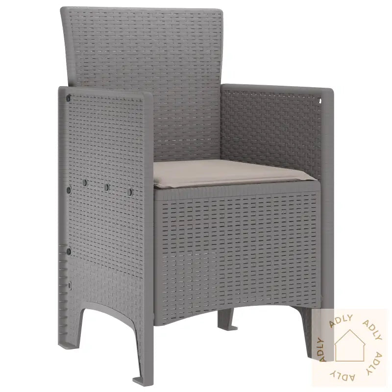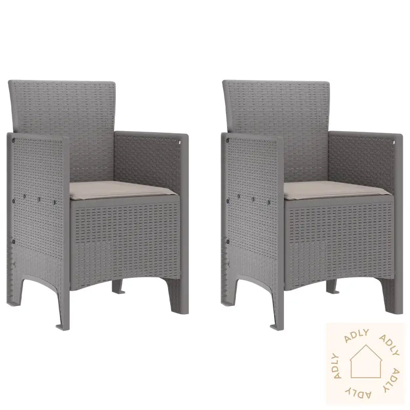 Dette hagesettet med stoler kombinerer stil og funksjonalitet, og passer perfekt når du vil nyte livet ute sammen med venner eller familie. Disse lysegrå stolene er laget i solid syntetisk polyrotting, noe som gir et moderne og oppdatert uttrykk til balkong, patio eller hage – de gir liv til uterommet ditt og matcher lett andre hagemøbler.