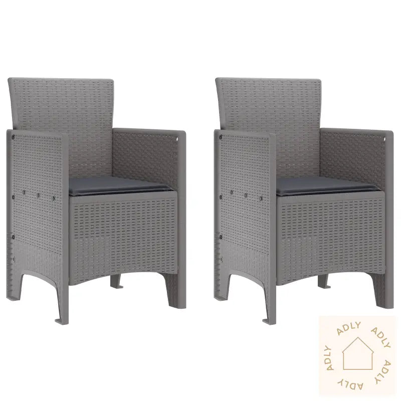 Dette settet med puterstoler kombinerer komfort og stil, og passer perfekt som utendørsmøbler til deg som liker å slappe av ute med venner og familie. Stolene er laget av slitesterke, værbestandige materialer av høy kvalitet og gir et tidløst, lysegrått preg til terrasse, hage eller balkong. Med dette settet får du møbler som tåler både sol og regn, og som holder seg fine år etter år.