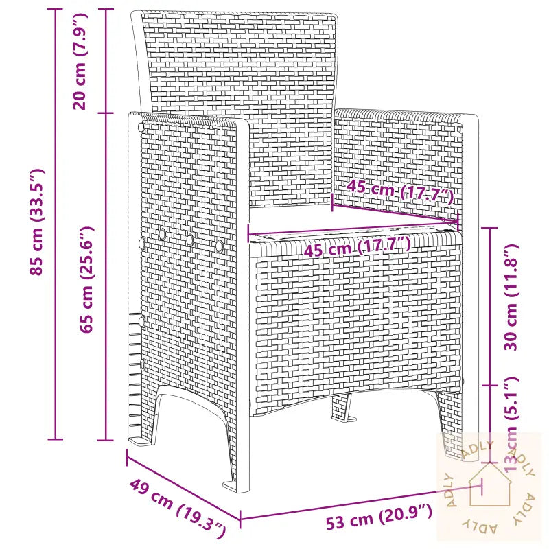 Kule puter: Hver stol har en tykk, myk skumpute som gir ekstra komfort og gjør stolen ideell for lange utekvelder eller sosiale sammenkomster.Stødig bygg: Stolene er produsert i robust, UV-beskyttet og værbestandig plast (polypropylen), noe som gjør dem perfekte som hagemøbler året rundt.Lett og enkel montering: Settet er designet for rask og enkel montering – alt du trenger er en skrutrekker. I tillegg er de lette nok til at du enkelt kan flytte dem rundt etter behov.Moderne stil: Den teksturerte overflaten og de rene linjene gir møblene et moderne uttrykk som passer inn i de fleste utemiljø, enten det er til fest, hverdag eller avslappende dager i solen.Sikker komfort: Utformingen gir god støtte og plass til to voksne personer (maks 100 kg), slik at du kan nyte maksimal komfort og trygghet når du bruker stolene utendørs.Antall artikler: 2Farge: LysegråForm: RektangulærMateriale: Syntetisk polypropylenOverflate: Teksturert for ekstra godt grepInnendørs/Utendørs: Kun for utendørs bruk - ideelle som hagemøblerCover inkludert: NeiRom: Hagen og terrassenBatterier inkludert: NeiKapasitet: Plass til 2 personer per stolMaksimalt antall personer: 2Maksimal vekt: 100 kgDimensjoner: 53 x 49 x 85 cm (B x D x H)Vekt: 11,1 kgSittedybde: 49 cmSittende kapasitet: 1Gynger: NeiMerke: Levering inkluderer: 2 utendørsmøblerMontering kreves: JaAnbefalt antall personer for montering: 2