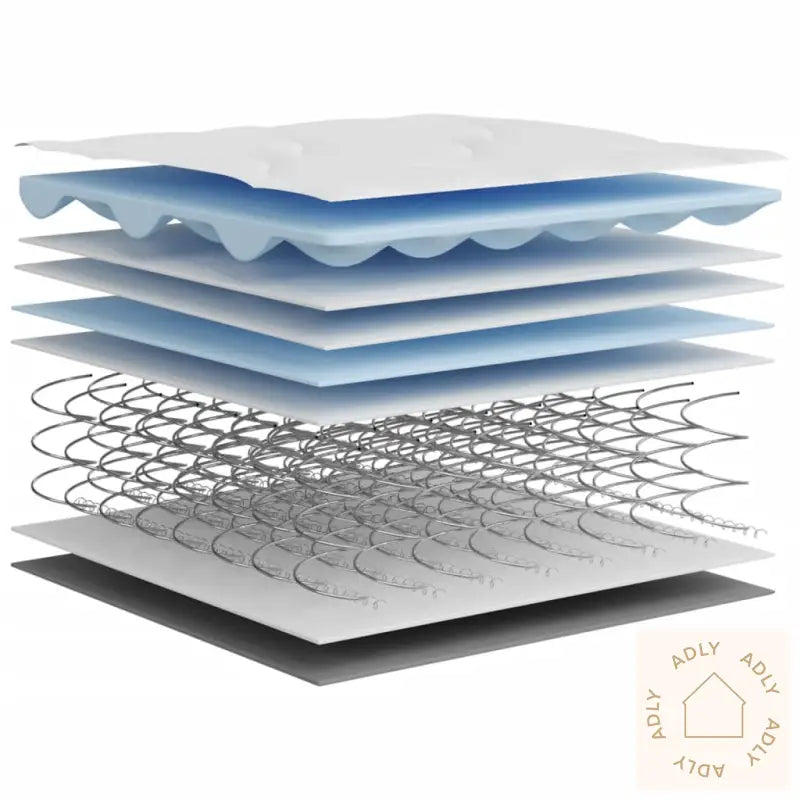 Slitesterkt stoff: Madrassen er trukket i et slitesterkt, enkelt og stilrent stoff som ikke bare ser bra ut, men også puster godt – det holder seg fint over tid og gir deg en madrass som tåler daglig bruk.Utmerket støtte: Det solide bonellfjærsystemet består av stabile, timeglassformede stålfjærer som fordeler vekten jevnt og gir fasthet under hele madrassen. Dette gir god kroppsstøtte, øker holdbarheten og sørger for at madrassen holder formen over tid.Forbedret komfort: Flere gjennomtenkte lag – inkludert skum og isolasjonsputer – kombineres for å gi en myk til middels fasthet som passer de fleste søvnstillinger. Denne oppbygningen demper bevegelser og støy, slik at du kan slappe av og våkne uthvilt – perfekt når du vil gjøre soverommet til et ordentlig komfortsonemøbel.Enkel å bruke: Praktiske håndtak gjør det lett å løfte og flytte madrassen. Det blir mindre tungvint å plassere eller justere den som del av dine møbler på soverommet, uansett om du flytter alene eller trenger å snu madrassen for mer komfort.Godt å vite: