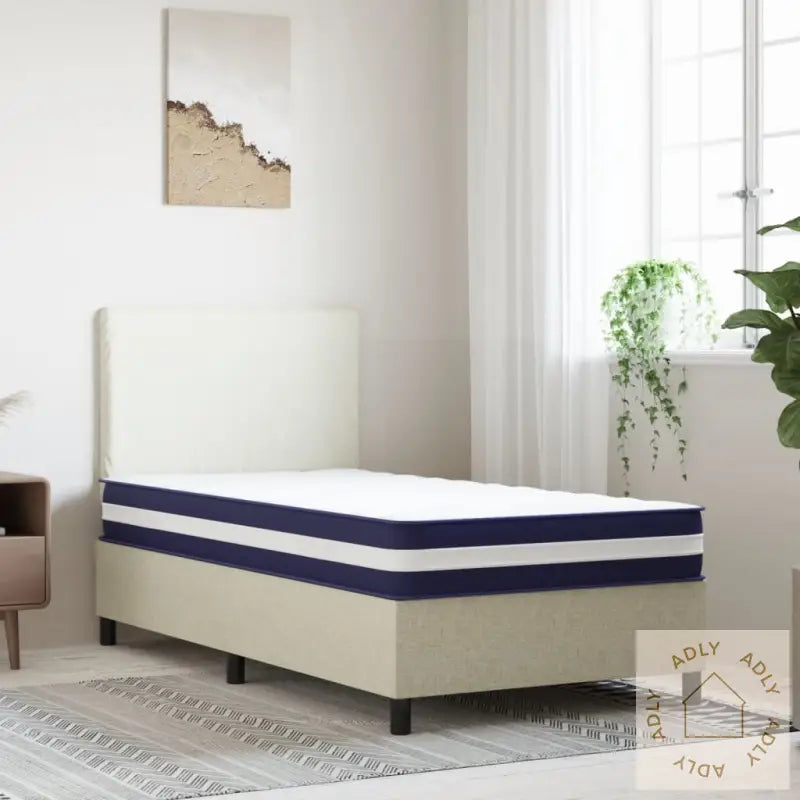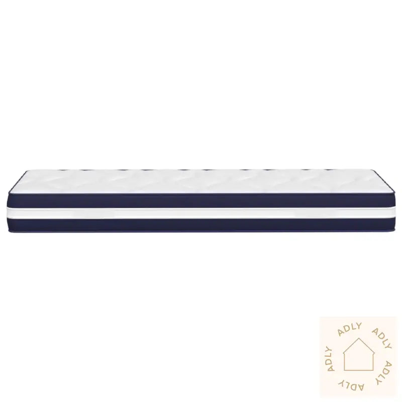 Madrassen leveres komprimert og rullet i en kompakt boks, så du kan enkelt ta den med deg, flytte den rundt eller montere den sammen med nye hagemøbler eller andre møbler til hjemmet.Farge: Hvit, blå og svartMateriale: Stoff (100% polyester)Fyll: Pocketfjær, skum, isolasjonsputeMål: 90 x 190 x 25 cm (B x L x T)Hardhet: Middels fastKviltingmønstre gir ekstra tekstur og et dekorativt preg