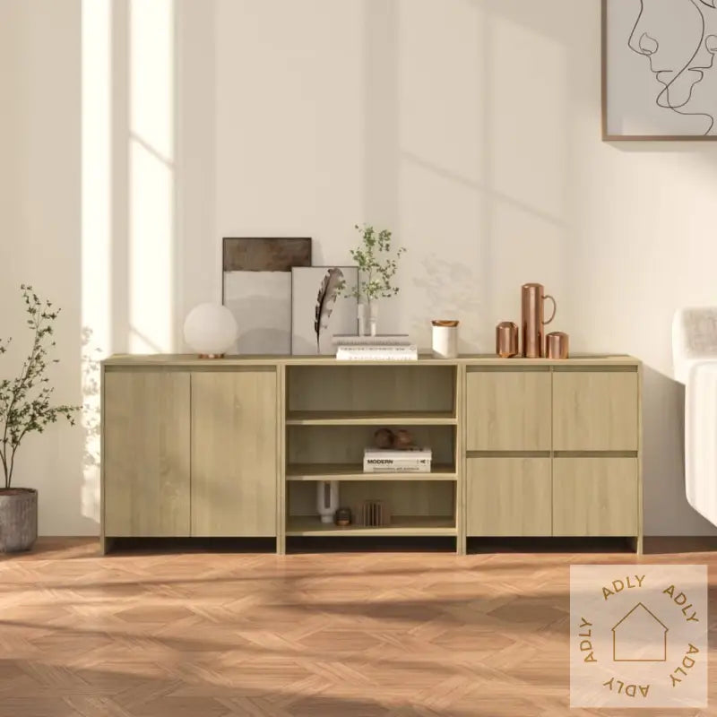 Disse skjenkene i sonoma eik er et flott valg for deg som ser etter både stilige og praktiske møbler til hjemmet. Med sitt tidløse design passer de perfekt inn i ulike interiørstiler og gir hjemmet ditt det lille ekstra av dekor og funksjon.