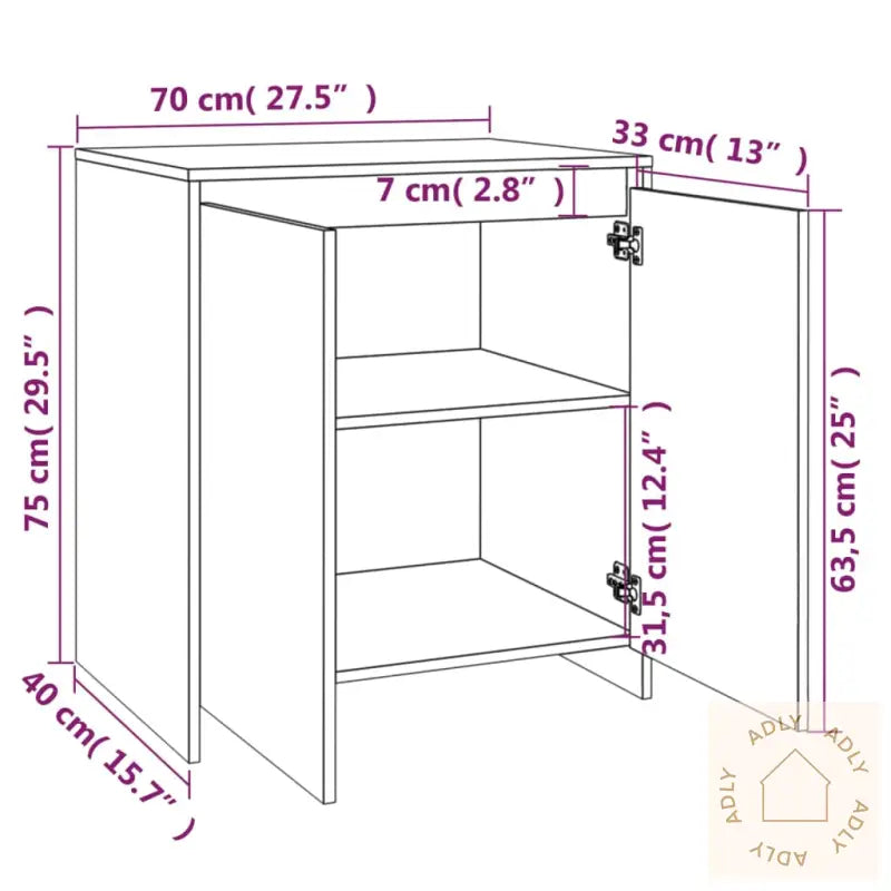 Farge: sonoma eikMateriale: konstruert treMål skjenk med 2 dører: 70 x 40 x 75 cm (B x D x H)Mål skjenk med hyller: 70 x 40,5 x 75 cm (B x D x H)Mål skjenk med 4 dører: 70 x 41 x 75 cm (B x D x H)Montering kreves: jaAdvarsel: For å forhindre at produktet velter må de medfølgende festene for vegg brukes.
