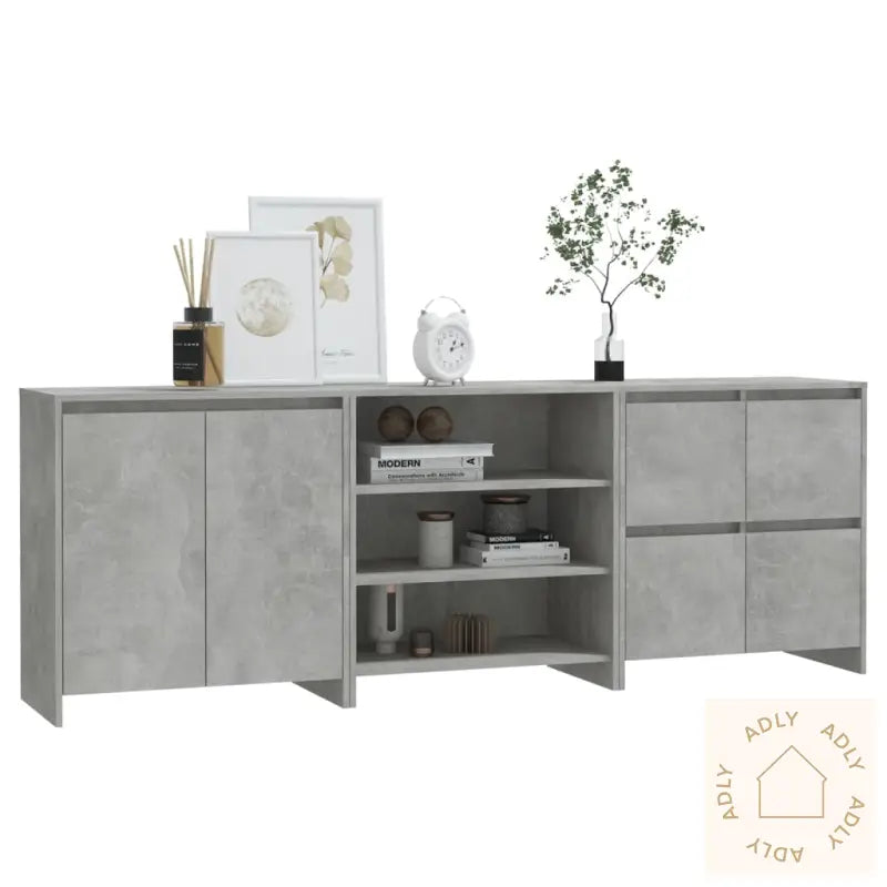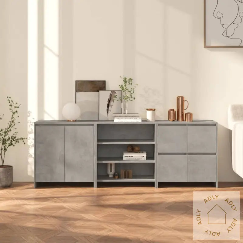 Med sin moderne betonggrå farge og elegante design blir disse skjenkene en stilfull del av ditt hjem uansett rom du plasserer dem i. De er laget av konstruert tre som gjør dem både robuste og slitesterke, med mål som passer praktisk inn i ulike deler av huset. Se beskrivelsene nedenfor hvis du vil vite mer om mål skjenk på de ulike variantene. Rengjøring går også raskt og enkelt – tørk bare over med en fuktig klut for å holde møbelet pent.