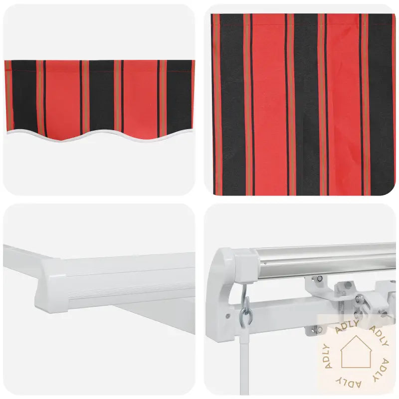 Denne manuelle markisen med rød og svarte striper gir et friskt løft til uteplassen og matcher de fleste stiler, enten du vil skape en koselig krok blant hagemøbler eller et kult samlingspunkt på terrassen. Markisen er ikke bare flott å se på – den gir deg også solid solbeskyttelse og sørger for at møbler til hjemmet eller uteområder holder seg fine lenger. Nyt gode øyeblikk utendørs med venner og familie, uansett om solen steker eller det kommer en regnskur.