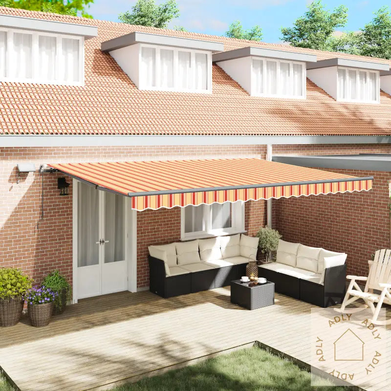 Farge: OransjeMønster: Stripete – parallelle linjer i varierende bredde og farge som gir et friskt uttrykkForm: RektangulærMateriale: PolyesterdukFinish: Vannavvisende for ekstra beskyttelseInnendørs/Utendørs: Kun utendørs brukRom: Passer perfekt i hagen eller på terrassenMin-Maks dimensjoner: 500 x 350 cm (B x D)Merke: vidaXLLevering Inneholder: Markiseduk, ramme, monteringsbeslag – alt du trenger for enkel monteringMontering kreves: JaAnbefalt antall for montering: 2 personer for rask og trygg installasjon