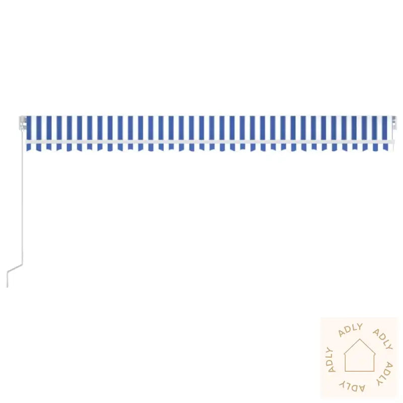 Farger: blå og hvitFarge ramme: hvitMaterialer: pulverlakkert aluminium, 100% polyesterstoff med PU-beleggSamlet mål: 600 x 350 cm (B x H)Montering kreves: ja