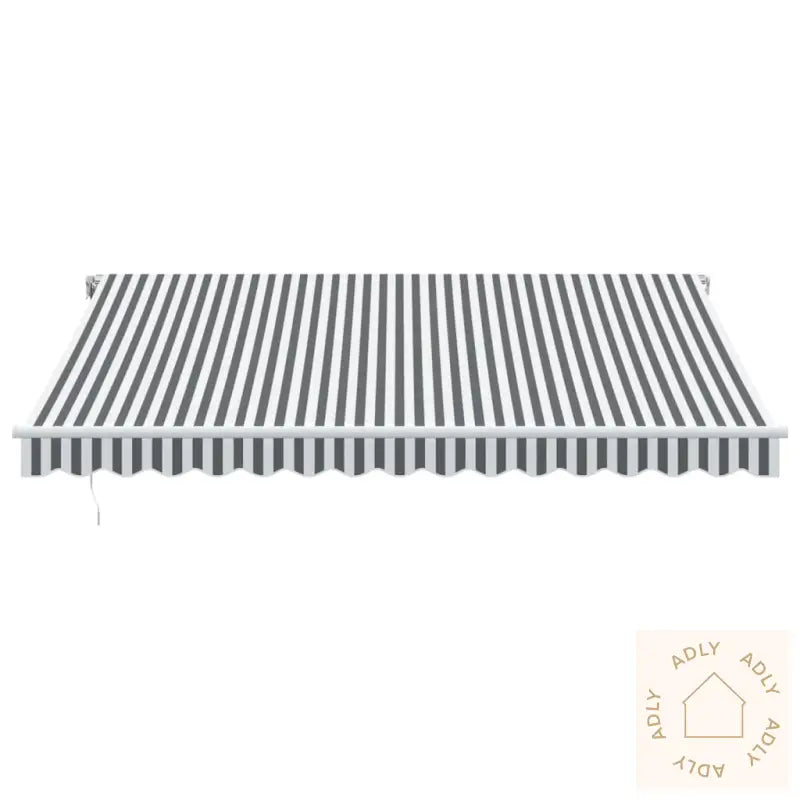 Markisens ramme er laget av pulverlakkert aluminium. Dette materialet gir både lang holdbarhet og styrke, samtidig som det krever lite vedlikehold – perfekt for både hagemøbler eller andre møbler til hjemmet. Stoffet består av 100 % polyester med PU-behandling, som beskytter mot UV-stråler og sollys, slik at familien og gjestene dine får en behagelig sone i skyggen.Du justerer enkelt vinkelen og høyden på markisen, slik at den passer din terrasse eller balkong akkurat slik du vil ha det. Med den lange håndsveiven åpner og lukker du den uttrekkbare markisen jevnt og enkelt, noe som gir optimal fleksibilitet gjennom dagen.Den moderne og stilrene designen gjør at denne uttrekkbare markisen passer inn i mange ulike miljøer – både hjemme og på kommersielle steder. Den egner seg utmerket for alt fra balkonger, terrasser og hager til uteserveringer, kafeer og butikker.Stoffet har antrasitt- og hvitfarge for et elegant uttrykk, mens rammen er helhvit.Laget av slitesterkt, pulverlakkert aluminium og stoff (100 % polyester) med PU-belegg.Målene er 400 x 350 cm (L x H), noe som gir ekstra stor skyggeflate.Markisen er vann- og smussavvisende, slik at den holder seg fin over tid.Produktet leveres med alt du trenger for montering.