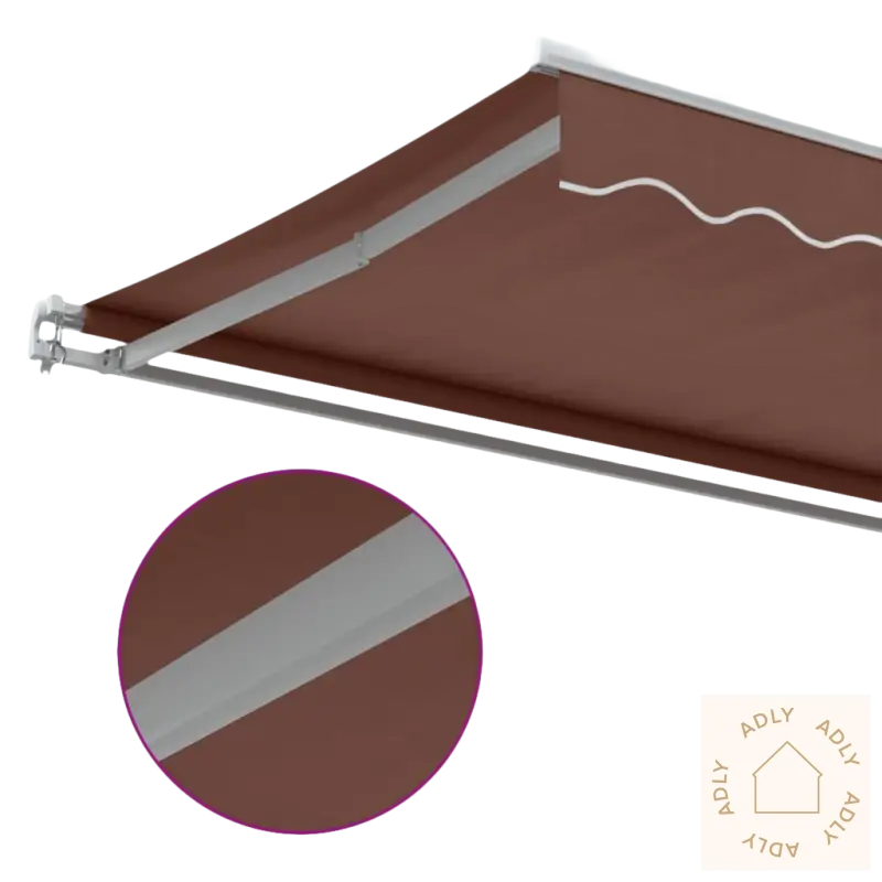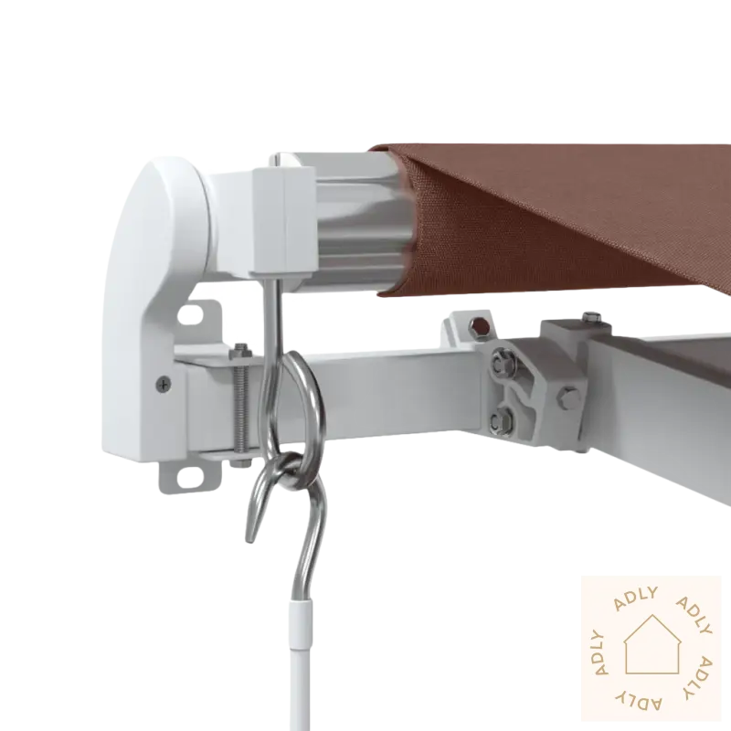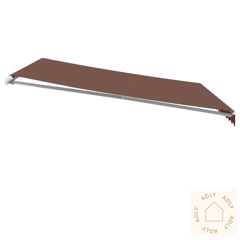 Slitesterkt materiale: Rammen på denne uttrekkbare markisen er laget av pulverlakkert aluminium, kjent for å være både robust og svært holdbart i all slags vær. Stoffet er 100% polyester med et PU-belegg som gjør det ekstra UV-bestandig, slik at både du og dine gjester slipper å bekymre dere for sterke solstråler når dere slapper av utendørs.Enkel i bruk: Markisen kan enkelt åpnes og lukkes med den lange håndsveiven, og både vinkel og høyde kan justeres akkurat slik du ønsker. På den måten får du fleksibilitet og kontroll, enten du trenger skygge midt på dagen eller mer lufting på kvelden.Allsidig design: Med sitt enkle og moderne utseende passer denne uttrekkbare markisen perfekt inn i mange forskjellige miljøer – alt fra private terrasser og balkonger til større utearealer i restauranter, kafeer eller butikker. Den bidrar til å gjøre uterommet mer komfortabelt, samtidig som den beskytter møblene dine.Farge på stoffet: BrunFarge på rammen: HvitMaterialer: Pulverlakkert aluminium og slitesterkt polyesterstoff (100 %) med PU-beleggTotale mål: 400 x 300 cm (L x B) – gir rikelig med skygge for større sittegrupper eller spiseplasserVann- og smussavvisende overflate gjør rengjøring enkelt og gir langvarig beskyttelseMontering kreves: ja – men enkel å sette sammen med medfølgende instruksjoner