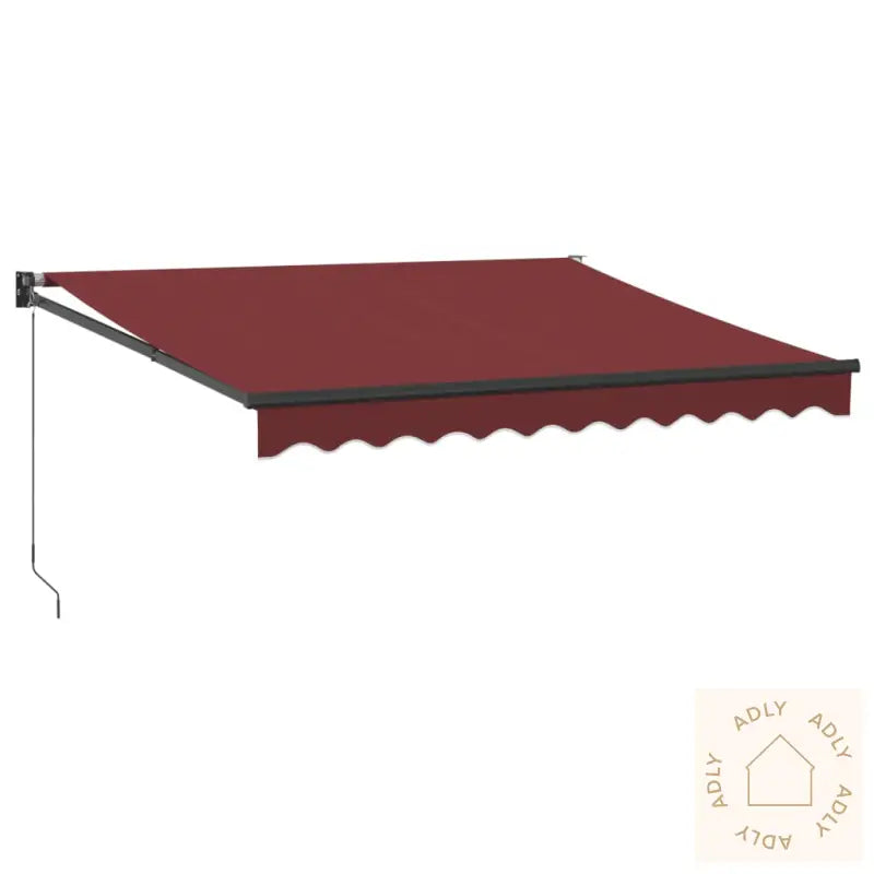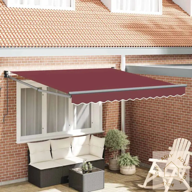 Slitesterkt materiale: Rammen er laget av pulverlakkert aluminium, som både er robust og har lang levetid. Stoffet har en PU-behandling som gjør det ekstra slitesterkt og UV-bestandig, slik at du og dine kan nyte hagemøblene trygt – uten å bekymre dere for skadelige solstråler. Perfekt hvis du vil øke komforten og verdien på dine møbler til hjemmet eller uterommet.Praktisk i bruk: Juster både vinkelen og høyden etter solforholdene, og gjør det enkelt å trekke ut eller inn markisen med den lange håndsveiven. Denne smarte funksjonen lar deg raskt tilpasse skyggen gjennom dagen, uansett om du slapper av alene eller har gjester på besøk.Bredt bruksområde: Den uttrekkbare markisen har et rent og moderne design som glir sømløst inn sammen med de fleste stiler av hagemøbler og passer både på private balkonger, terrasser og i hager — men også til kommersielle bruksområder, som restauranter, kafeer eller butikker. Det gir deg fleksibilitet, enten du ønsker et hyggelig uterom hjemme eller vil gi kundene dine en lun og attraktiv sone utendørs.Farge, stoff: BurgunderFarge, ramme: GråMaterialer: pulverlakkert aluminium, 100 % polyesterstoff med PU-beleggStørrelse totalt: 300 x 250 cm (L x B)Vannavvisende og enkel å holde ren – beskytter også mot lett regn og smussKrever montering