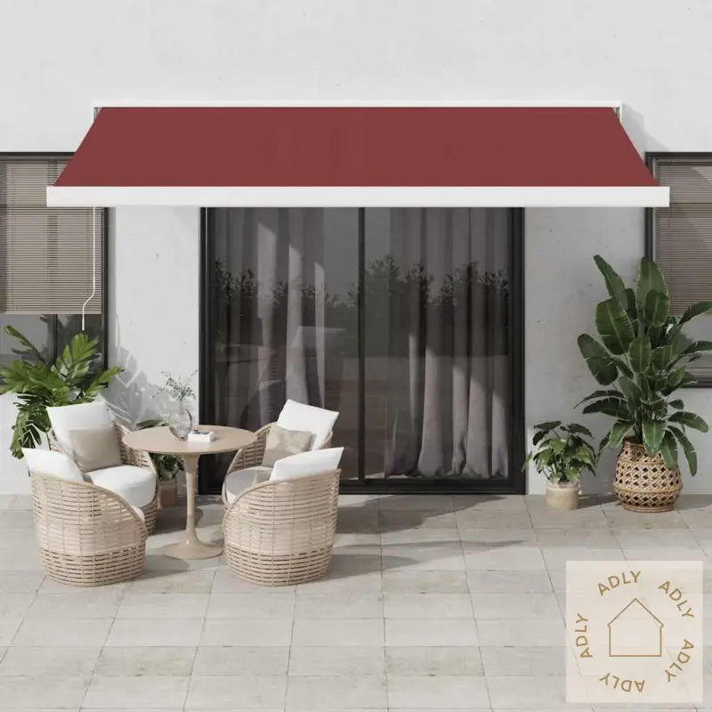 Slitesterkt materiale: Markiserammen er laget av pulverlakkert aluminium, noe som gir ekstra styrke og lang holdbarhet, selv under norske værforhold. Det solide stoffet er laget av 100 % polyester med PU-behandling, så det tåler både solskinn og regn, samtidig som det er både UV-bestandig og vannavvisende. Perfekt løsning for deg som vil beskytte familie og gjester mot sterk sol.Superenkelt å justere: Med denne uttrekkbare markisen kan du enkelt tilpasse både vinkel og høyde slik du ønsker. Den lange håndsveiven gjør det smidig å dra markisen ut eller inn akkurat når det passer – enten sola steker eller du vil åpne opp for mer lys.Elegant design med mange muligheter: Den uttrekkbare markisen har et stilrent uttrykk som matcher alt fra moderne hagemøbler til klassiske møbler til hjemmet. Passer til balkonger, terrasser, hager, kafeer, restauranter, butikker og flere ulike utemiljøer – gir skygge og beskyttelse samt et løft til uteplassen din.Farge stoff: burgunderFarge ramme: hvitMateriale: pulverlakkert aluminium og polyesterstoff med PU-belegg for ekstra beskyttelseStørrelse: 400 x 300 cm (L x B) – stor nok til å dekke mye, men lett å justereVann- og smussavvisende, noe som gjør vedlikeholdet enkelt og avslappetMontering kreves