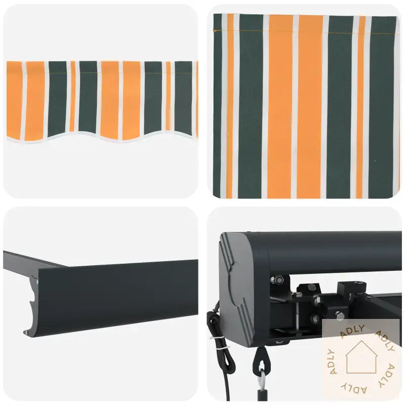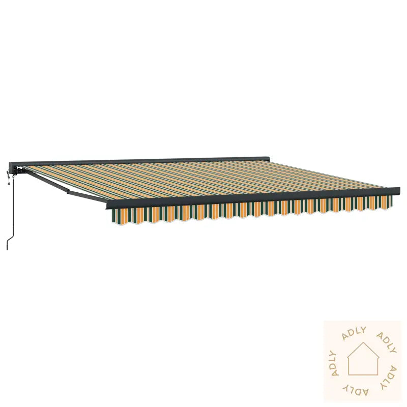 Piff opp uterommet ditt med en vidaXL manuell uttrekkbar markise, perfekt til både balkonger og terrasser. Denne stilige uttrekkbare markisen har et moderne stripete design i grønt og hvitt, noe som gir uteplassen din et friskt og innbydende uttrykk. Markisen gir rikelig med skygge på varme dager, slik at du kan slappe av komfortabelt utendørs, uansett vær. Den er laget av slitesterk polyester med matt overflate som tåler sol og lett regn, og den robuste konstruksjonen gjør den motstandsdyktig mot daglig bruk. Med manuell uttrekksmekanisme justerer du enkelt hvor mye skygge du ønsker, og håndteringen er lett for alle. Rektangulær form sørger for god dekning over spisebord eller sittegruppe, og det tidløse mønsteret matcher de fleste hagemøbler og stiler.