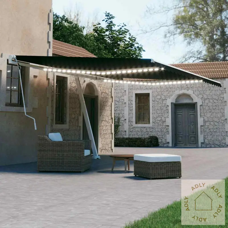 Om kvelden gir de soldrevne LED-lampene en stemningsfull og energibesparende belysning, så du får mest mulig ut av uterommet ditt. Dette gir deg ekstra verdi og bruksglede gjennom hele døgnet. Kombiner gjerne denne markisen med flotte møbler til hjemmet eller hagen for å skape en personlig og praktisk uteplass!