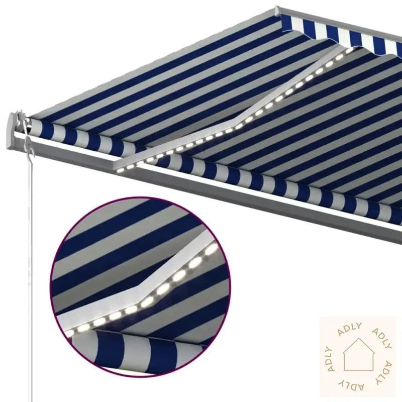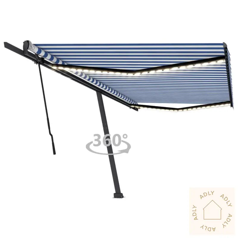 Farge stoff: blå og hvitFarge ramme: antrasittMaterialer: pulverlakkert aluminium, 100% polyesterstoff med PU-beleggSamlet mål: 500 x 300 cm (B x H)Mål stolpe: 450 x 245 cm (B x H)Batteri: 3 x 3,7 V (2200 mAh)LED-effekt: 3 WLED-spenning: 12 VLED-fargetemperatur: KV3000Montering kreves: jaMarkisen er et smart valg for deg som ønsker moderne, praktiske og holdbare møbler til hjemmet og uterommet. Her får du kvalitetsmaterialer og fleksible løsninger, slik at du kan nyte uterommet komfortabelt – enten du slapper av alene eller samler venner og familie til koselige sammenkomster.