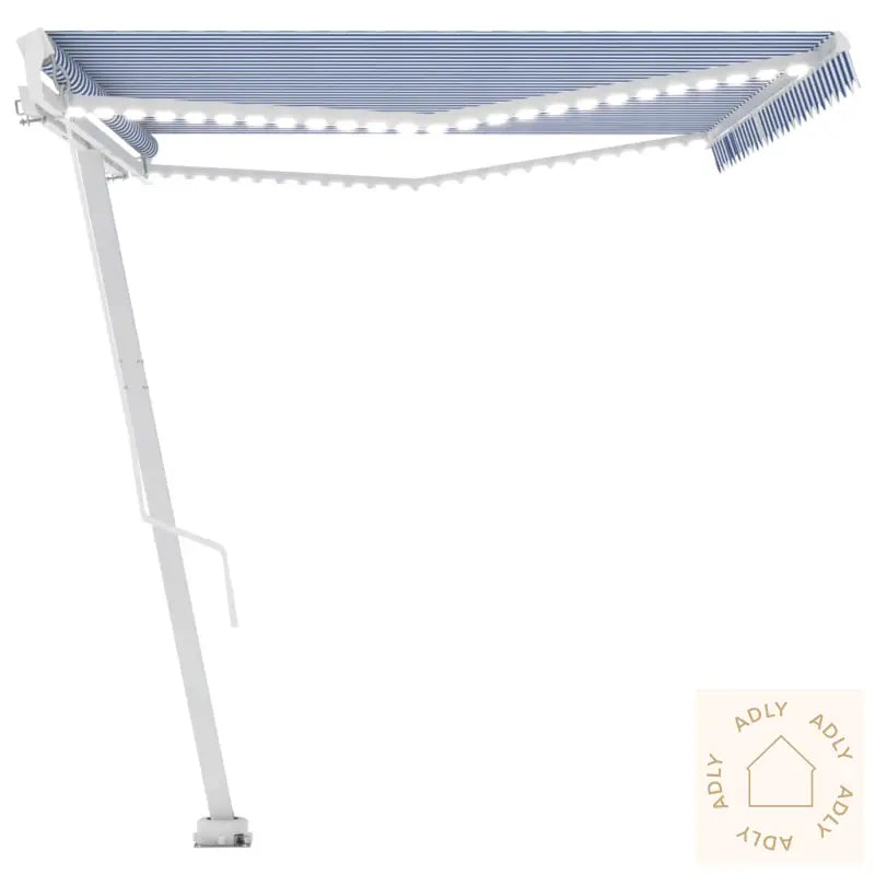 Et ekstra pluss er de soldrevne LED-lysene, som gir energibesparende og stemningsfull belysning etter solnedgang. Med en solid base som kan rotere 360 grader, kan du alltid justere skyggen eller dekke behovet ditt for lys, uansett hvordan uterommet er innredet. Med et tidløst design i blått og hvitt blir markisen lett en naturlig del av helheten sammen med både moderne hagemøbler og tradisjonelle møbler til hjemmet. Passer også perfekt med bokhyller og stående hyller i uteområder som krever fleksible løsninger.