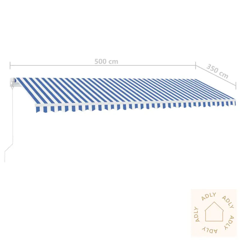 Farger: blå og hvitFarge ramme: hvitMaterialer: pulverlakkert aluminium, 100% polyesterstoff med PU-beleggSamlet mål: 500 x 350 cm (B x H)Mål stolpe: 450 x 245 cm (B x H)Batteri: 3 x 3,7 V (2200 mAh)LED-effekt: 3 WLED-spenning: 12 VLED-fargetemperatur: KV3000Montering kreves: ja