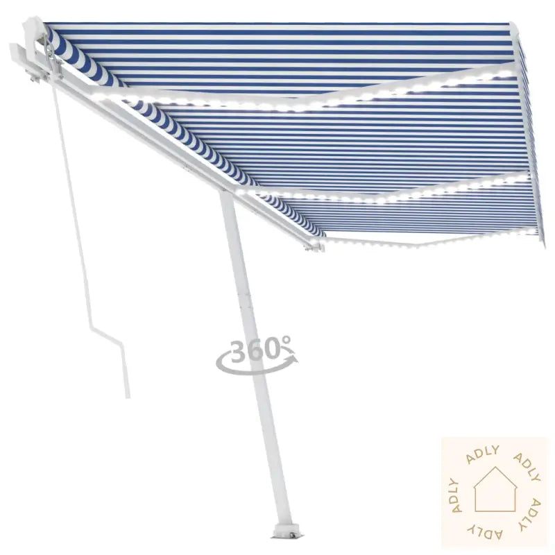 De innebygde, soldrevne LED-lysene gir deg stemningsfull belysning på kveldstid, så uteplassen kan brukes døgnet rundt uten ekstra strømforbruk. Den solide foten lar hele basen rotere 360 grader, slik at du enkelt kan justere markisen når solen beveger seg eller etter plasseringen av hagemøblene dine.
