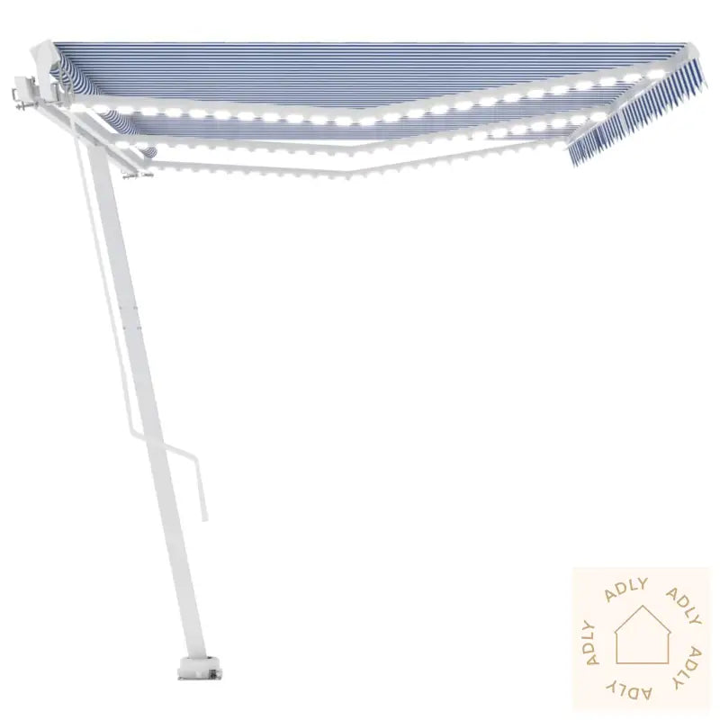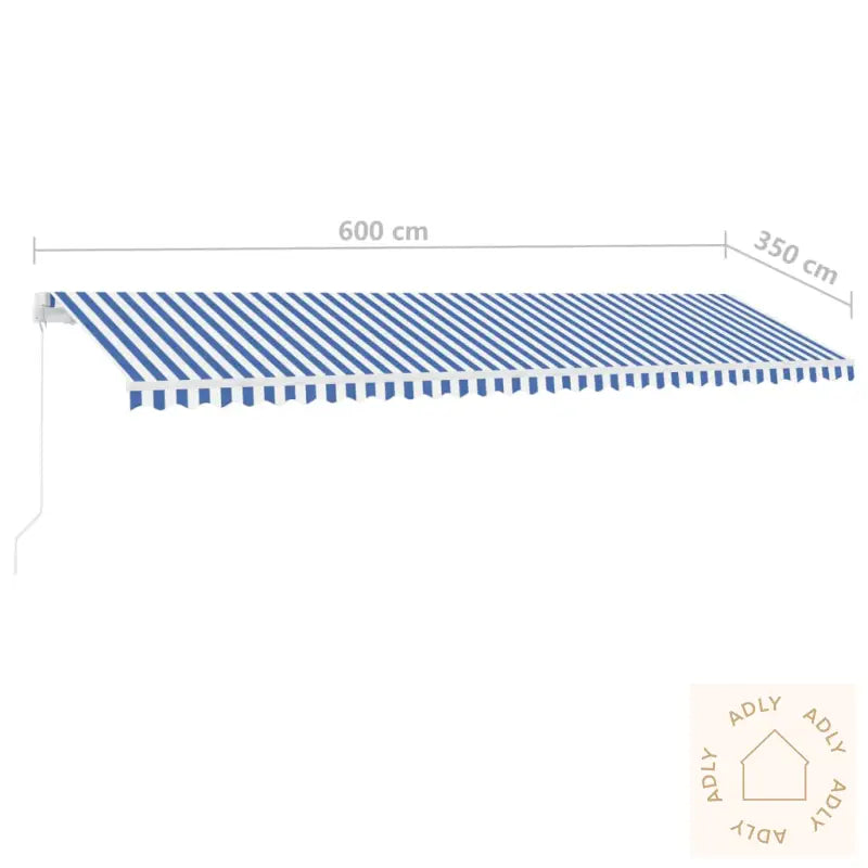 Farger: Blå og hvitRammefarge: HvitMaterialer: Pulverlakkert aluminium, 100% polyesterstoff med PU-beleggSamlede mål: 600 x 350 cm (B x H)Mål stolpe: 600 x 245 cm (B x H)Batteri: 3 x 3,7 V (2500 mAh)LED-effekt: 3 WLED-spenning: 12 VLED-fargetemperatur: KV3000Montering kreves: ja