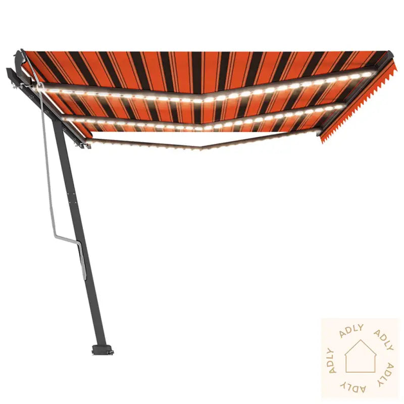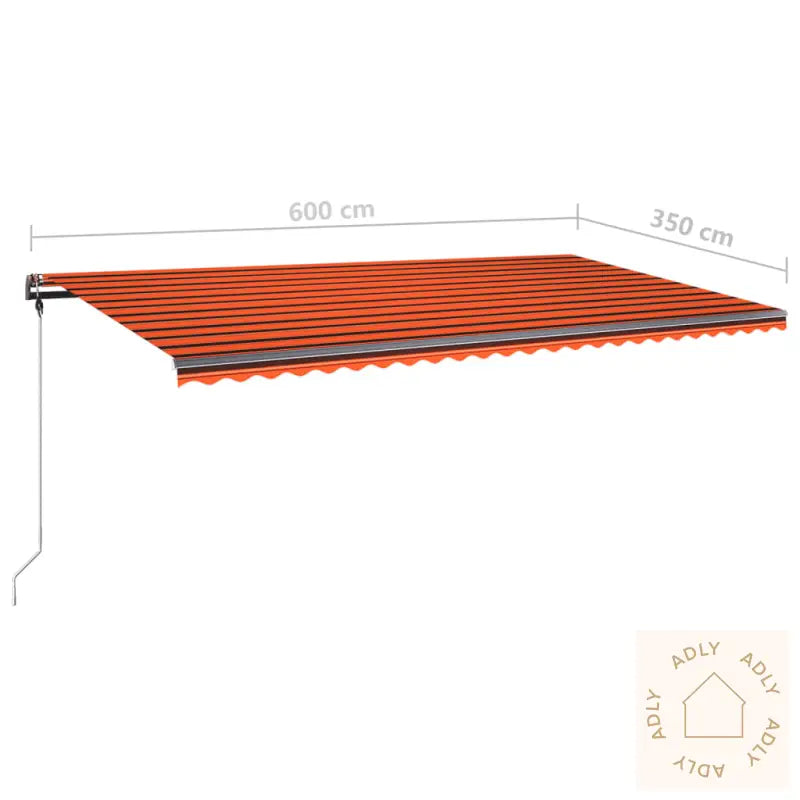 Farge stoff: oransje og brunFarge ramme: antrasittMaterialer: pulverlakkert aluminium, 100% polyesterstoff med PU-beleggSamlet mål: 600 x 350 cm (B x H)Mål stolpe: 600 x 245 cm (B x H)Batteri: 3 x 3,7 V (2500 mAh)LED-effekt: 3 WLED-spenning: 12 VLED-fargetemperatur: KV3000Montering kreves: ja