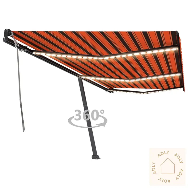 Markisen trekkes ut og inn med den praktiske lange håndsveiven, så du har full kontroll over solforholdene uten stress. Den solide basen kan roteres 360 grader, så du kan stille inn markisen nøyaktig etter solens gang eller egne ønsker. På kveldstid sørger de integrerte soldrevne LED-lysene for koselig og energieffektiv belysning, som forlenger sommerkveldene og gjør uteområdet ditt ekstra innbydende – perfekt tilpasset moderne utendørsmøbler og dagens hjemmetrender.