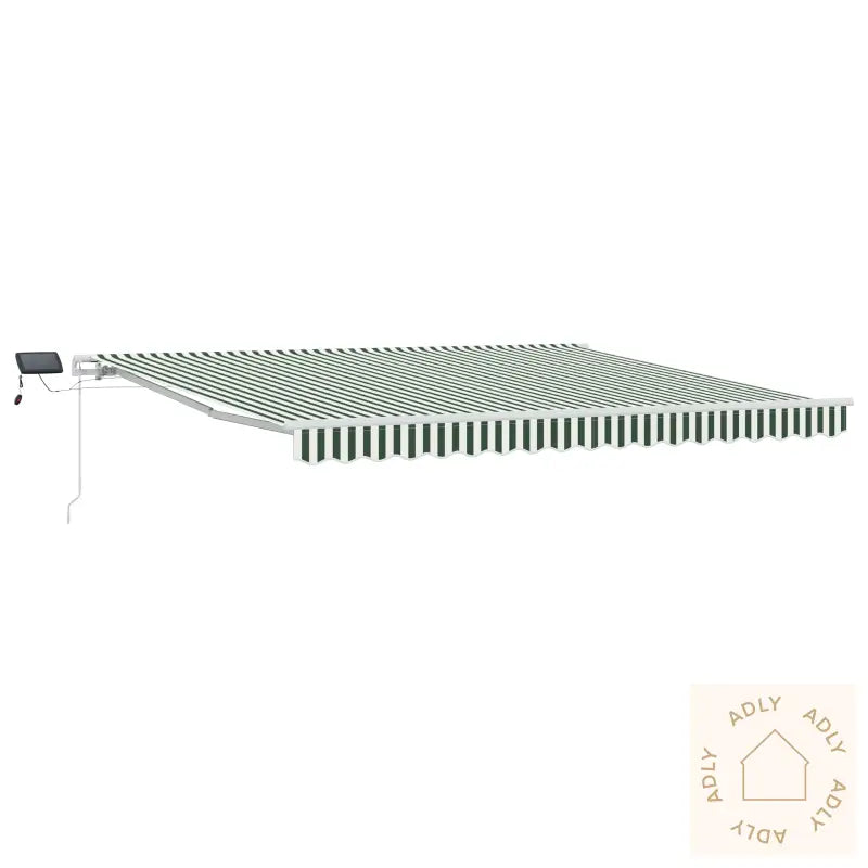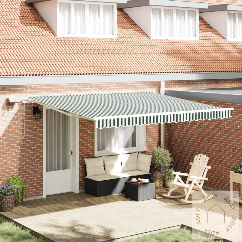 Farge: GrønnMønster: Stripet (parallelle linjer i forskjellige bredder og nyanser)Form: RektangulærMateriale: PolyesterstoffBruksområde: Kun utendørs, ideell til hage og terrasseDimensjoner: 300 cm (minimum til maksimum lengde)Levering inkluderer: 1 uttrekkbar markiseMontering: Ja, montering må utføres; det anbefales to personer for enklere oppsettDen solide konstruksjonen og brukervennlige manuelle betjeningen gjør denne uttrekkbare markisen fra vidaXL til et pålitelig tilskudd i hagen din eller på terrassen. Perfekt om du vil oppgradere uteplassen og beskytte dine hagemøbler – her får du både funksjonalitet og stil i ett produkt.