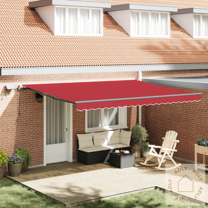 Markisen kommer i en flott rød farge som gir uteplassen et løft, og mekanismen gjør den enkel å trekke ut for hånd når du trenger ekstra skygge. Med generøse mål på 450 x 300 cm dekker den større områder, så hele familien kan finne ly fra solen. Den matte finishen på polyesterduken sørger for at markisen både ser bra ut og tåler vær og vind over tid. En manuell uttrekkbar markise er et smart valg for deg som vil oppgradere hagemøbler og utemiljø uten komplisert teknologi eller strømtilgang.