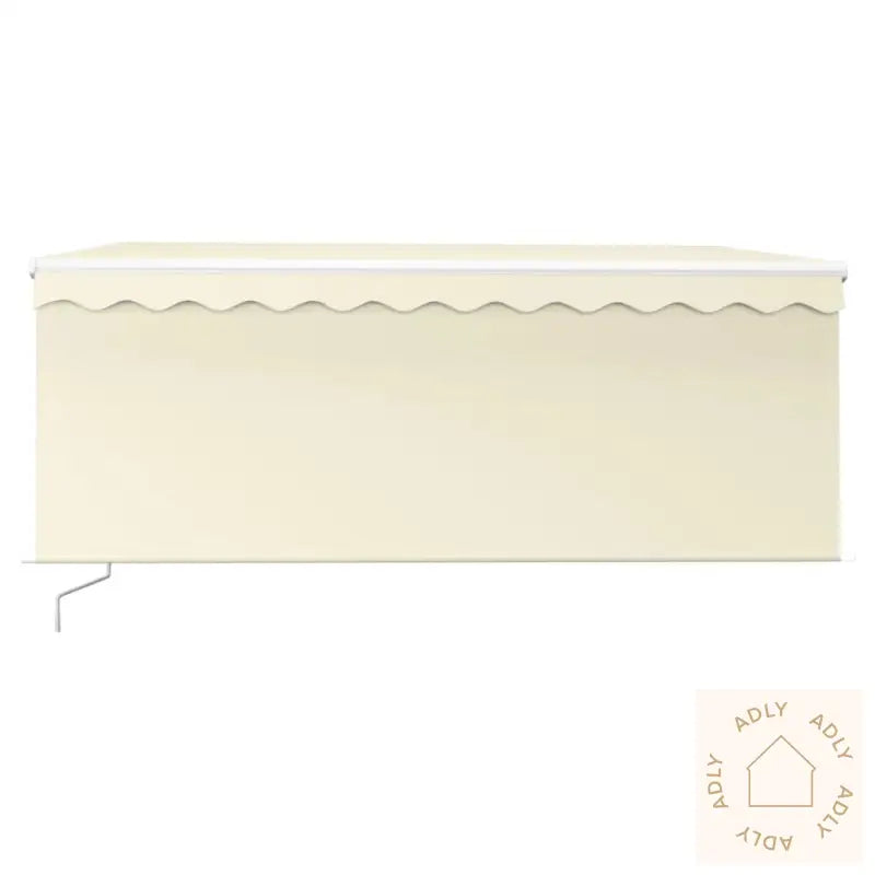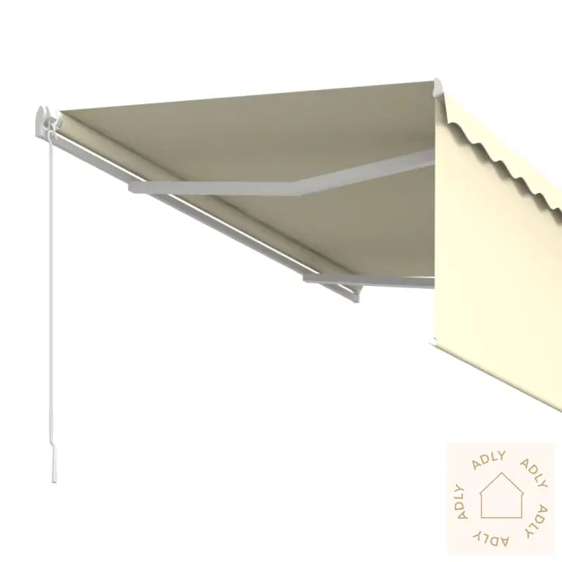 Farge: kremhvitFarge ramme: hvitMaterialer: pulverlakkert aluminium, 100% polyesterstoff med PU-beleggMål markise: 350 x 250 cm (B x H)Mål rullegardin: 350 x 120 cm (B x H)Montering kreves: ja