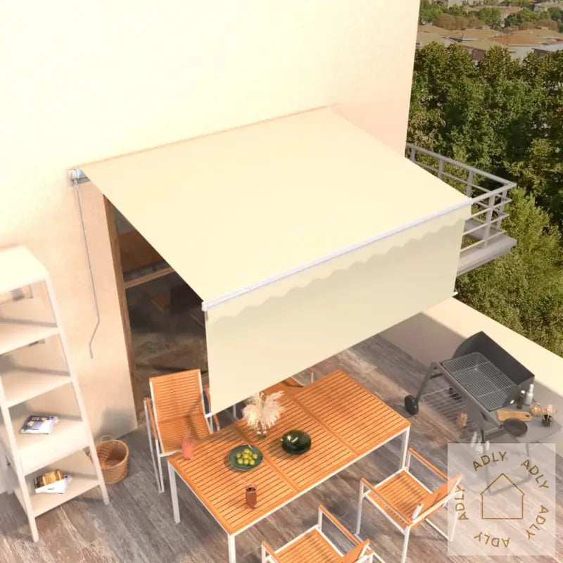 Lag et koselig og moderne område i hagen eller på terrassen med denne uttrekkbare markisen – perfekt sammen med dine utendørsmøbler eller om du ønsker å utvide utvalget av hagemøbler. Den solide, men lette konstruksjonen er laget av rustbestandig, pulverlakkert aluminiumsramme som tåler mye vær over tid. Markiseduken er produsert i høykvalitets polyesterstoff med PU-belegg, noe som gjør den både UV-beskyttende og vanntett. Dette gir god beskyttelse mot både sol og regn hele sommeren. Du kan enkelt justere vinkel og høyde etter behov for å skape skygge akkurat der du vil ha det – enten det er for å skjerme barna, lage en hyggelig uteplass, eller få litt privatliv når du slapper av. En praktisk og lang sveiv gjør at du raskt kan trekke markisen ut og inn på få sekunder. Sidgardinen sørger for ekstra privatliv og god beskyttelse mot nysgjerrige blikk eller lave solstråler, slik at du får et skjermet og komfortabelt uterom – like stilig til både hjemmet og hytten som til større utearealer.