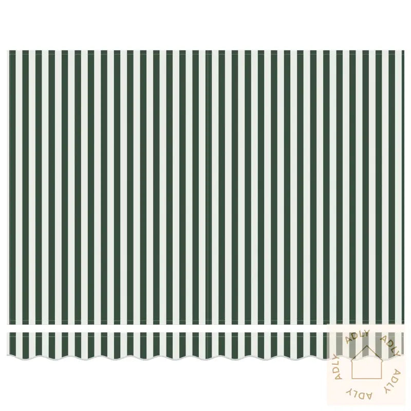 Farge: GrønnMønster: Stripete (parallelle linjer i varierende bredde og farge)Form: RektangulærMateriale: PolyesterFinish: MaltInnendørs/Utenfor: UtendørsRom: AnnenLevering Inneholder: MarkiseMontering Kreves: JaAnbefalt Antall Personer for Montering: 2Velg vidaXL markise erstatningsstoff hvis du ønsker et moderne utseende og maksimal funksjon til din uteplass. Den er utviklet for å passe til ulike stiler av hagemøbler, og gir både skygge og beskyttelse som varer hele sesongen.