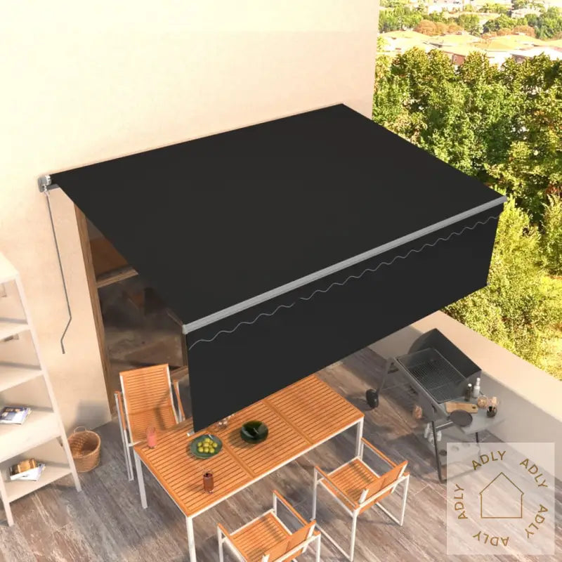 Lag et kult og behagelig uterom med denne stilige uttrekkbare markisen – perfekt for deg som vil kombinere smarte utendørsmøbler med funksjonell solskjerming. Markisen har en stødig ramme i rustbestandig, pulverlakkert aluminium som både er lett å håndtere og tåler nordisk vær. Markisestoffet er laget av slitesterk polyester med høy tetthet og har PU-belegg, noe som gjør det UV- og vanntett, så du får både effektiv solbeskyttelse og skjerming mot regn. Med justerbar vinkel og høyde er det enkelt å tilpasse skyggen etter behov, noe som gir ekstra fleksibilitet til uteplassen din. Den lange håndsveiven gjør det enkelt å trekke markisen ut eller inn når du ønsker. Rullegardinen gir ekstra beskyttelse mot innsyn og sol, så du kan nyte privatlivet på terrassen. En praktisk og stilig løsning for deg som vil ha moderne og holdbare hagemøbler eller møbler til hjemmet som virkelig gjør uterommet komplett.