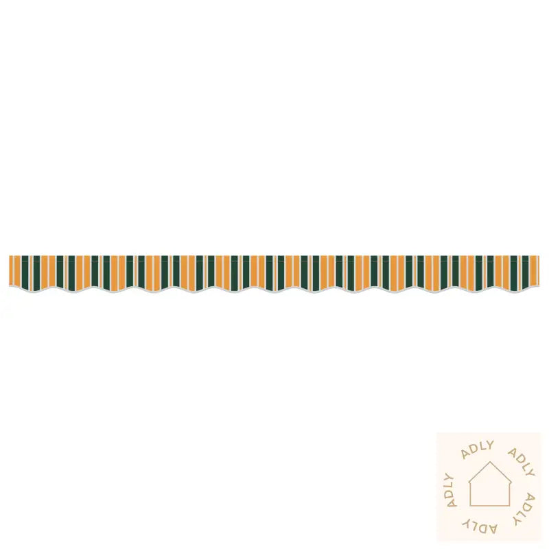 Gjør uteplassen din ekstra innbydende med vidaXL markise valance – et stilfullt valg som gir effektiv solbeskyttelse og setter prikken over i-en på hagemøbler og uterom. Markisen har et friskt design med grønne og gule striper, noe som skaper et livfullt uttrykk og gir terrassen eller hagen en energisk stemning. Perfekt dersom du vil slappe av utendørs uten å bekymre deg for sterkt sollys, samtidig som den gir uterommet et personlig preg. Den slitesterke matt-finishen i polyester gjør markisen veldig enkel å vedlikeholde, så du får gleden av den i mange sesonger – en investering i både komfort og stil blant dine utemøbler eller møbler til hjemmet.